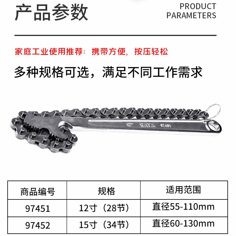 世达精品耐用管子链条扳手汽车维修机油滤芯多功能工具12寸15寸
