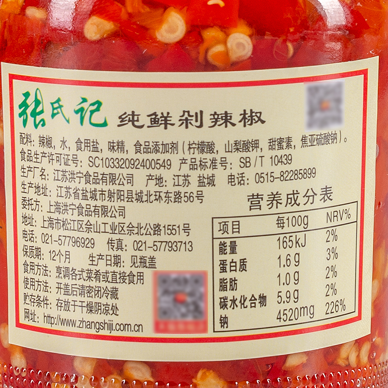 张氏记纯鲜剁辣椒200g佐餐调味料