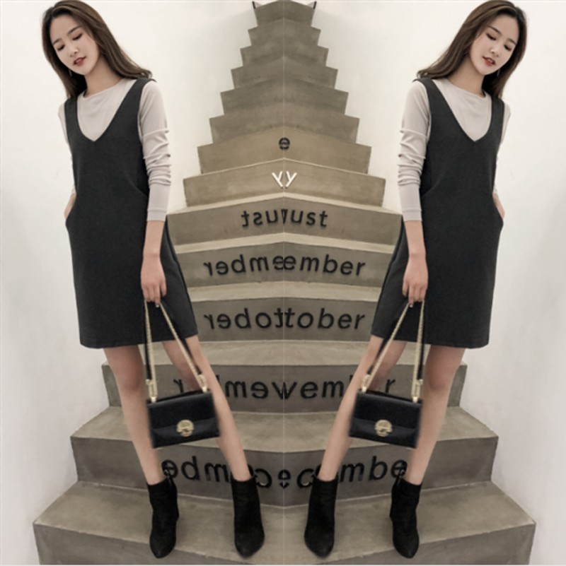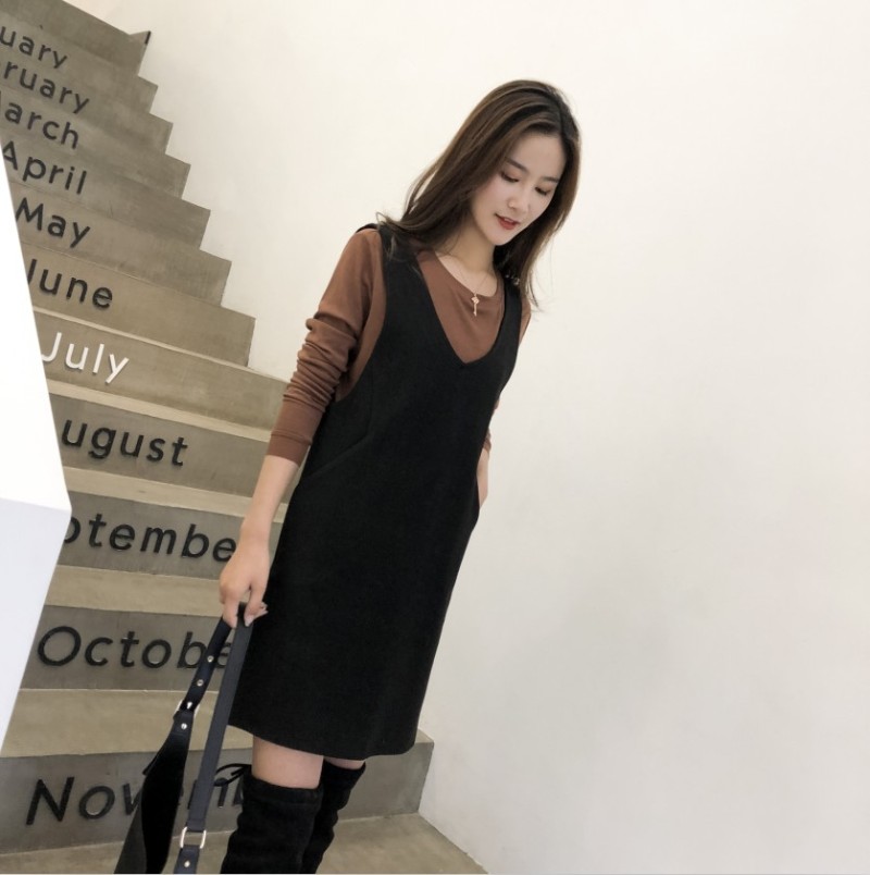 毛呢背带裙女外穿21秋冬新款显瘦打底连衣裙内搭背心裙修身马甲裙