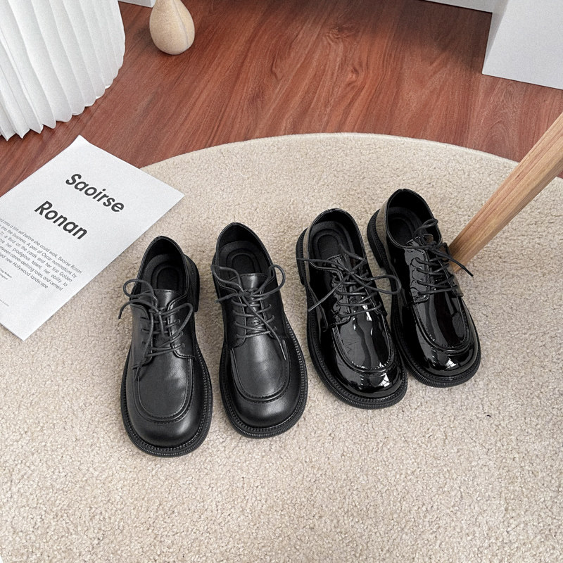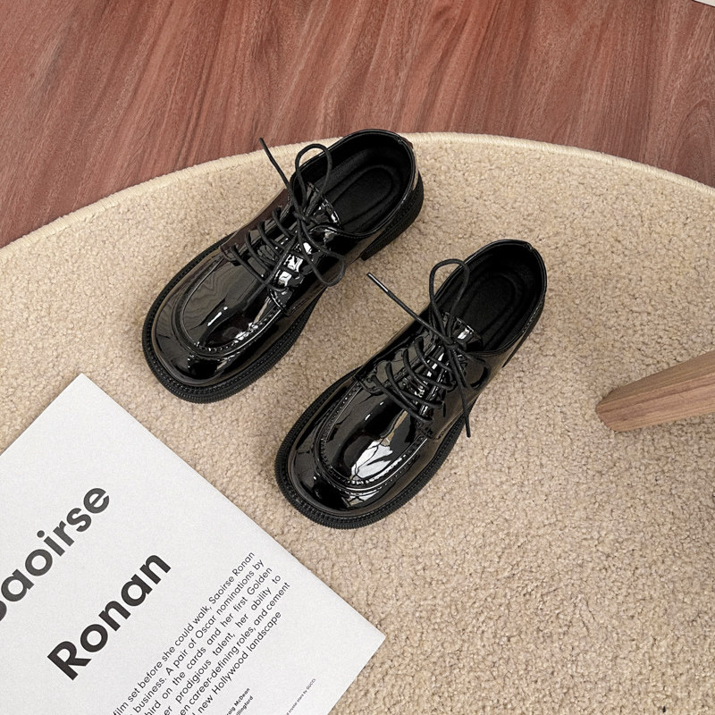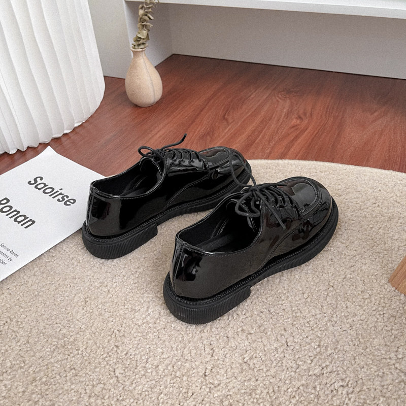 英伦风平底小皮鞋女漆皮单鞋2025春秋季圆头系带牛津鞋亮面马丁鞋