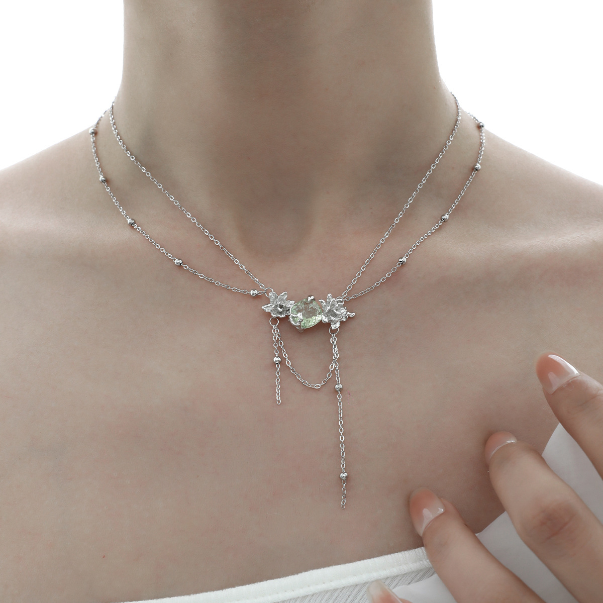 南风歌《茉莉》项链S925纯银新中式双层流苏项链清冷仙美小众设计
