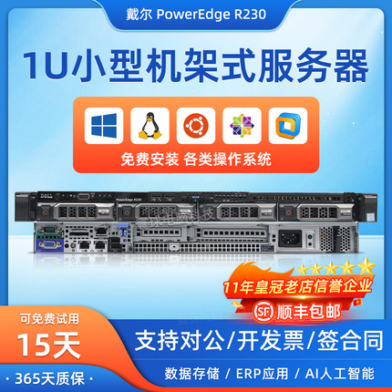 DELL戴尔R230服务器至强E3四核1U机架式静音ERP共享文件存储R240