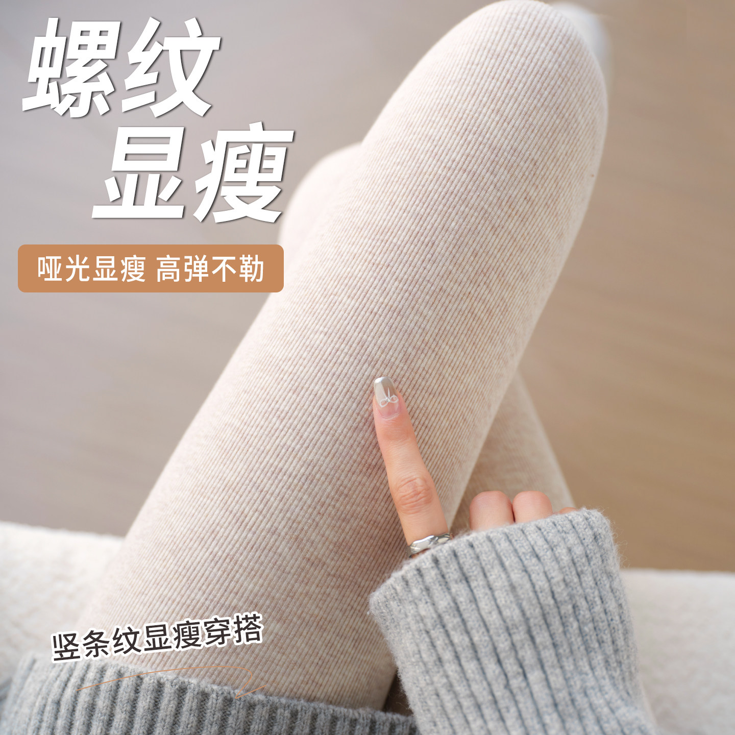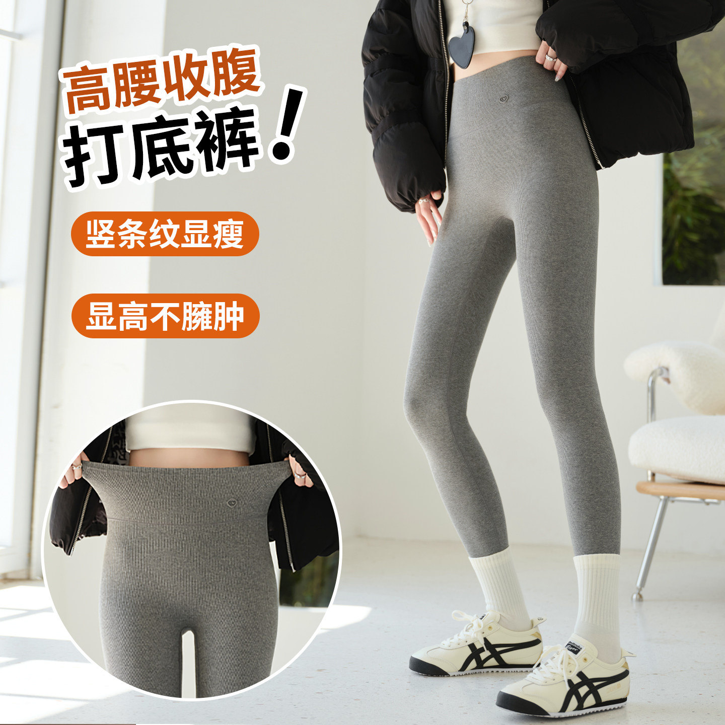 灰色加绒打底裤女秋冬季外穿高腰收腹加厚保暖棉裤螺纹小脚裤秋裤