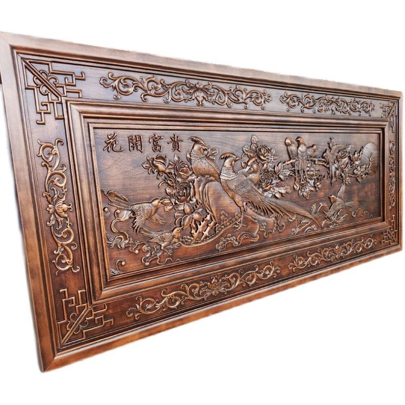 东阳木雕香樟木办公室客厅挂件隔断电视背景墙雕刻定制