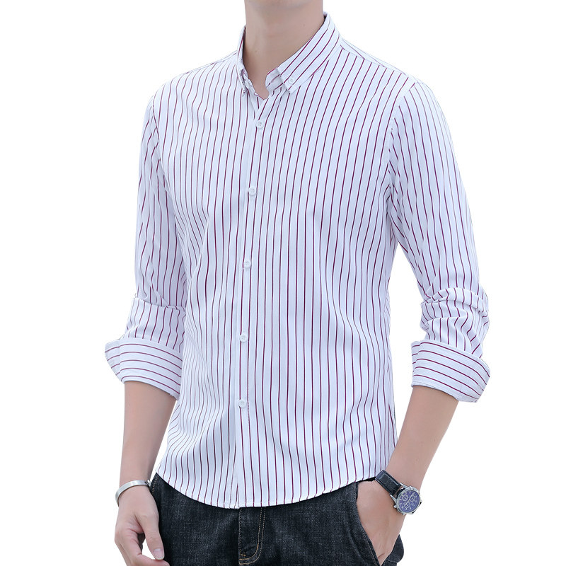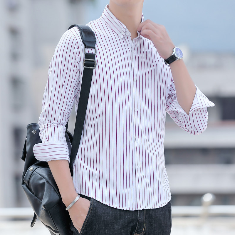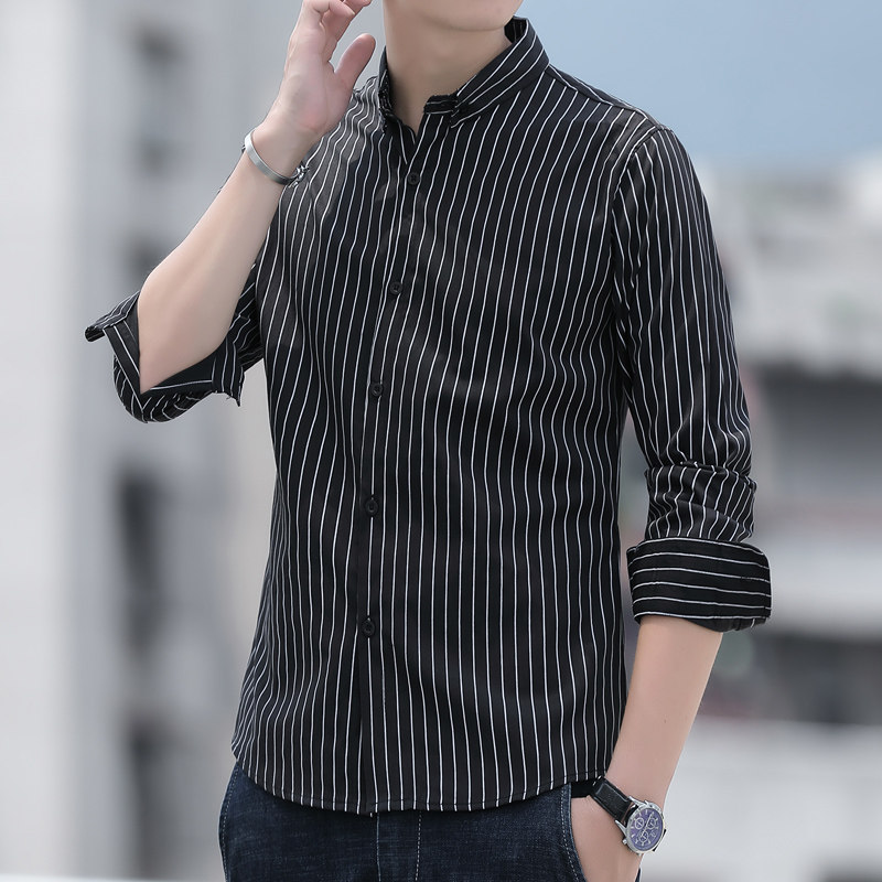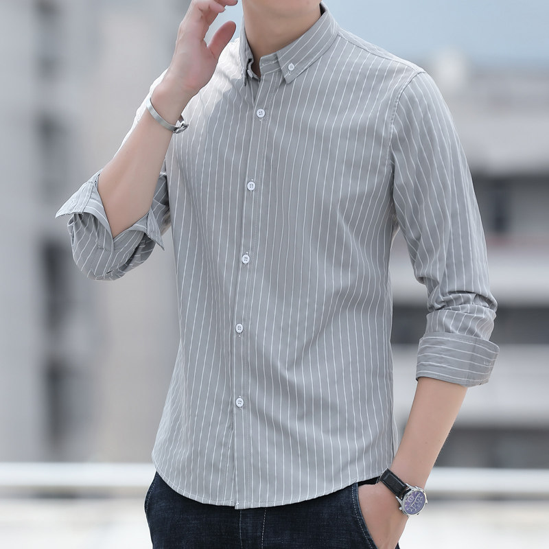 罗蒙男士衬衫条纹宽松潮牌帅气长袖衬衣男款2026春季新款休闲上衣