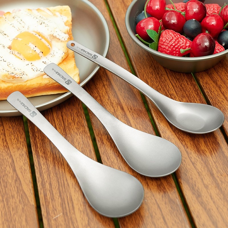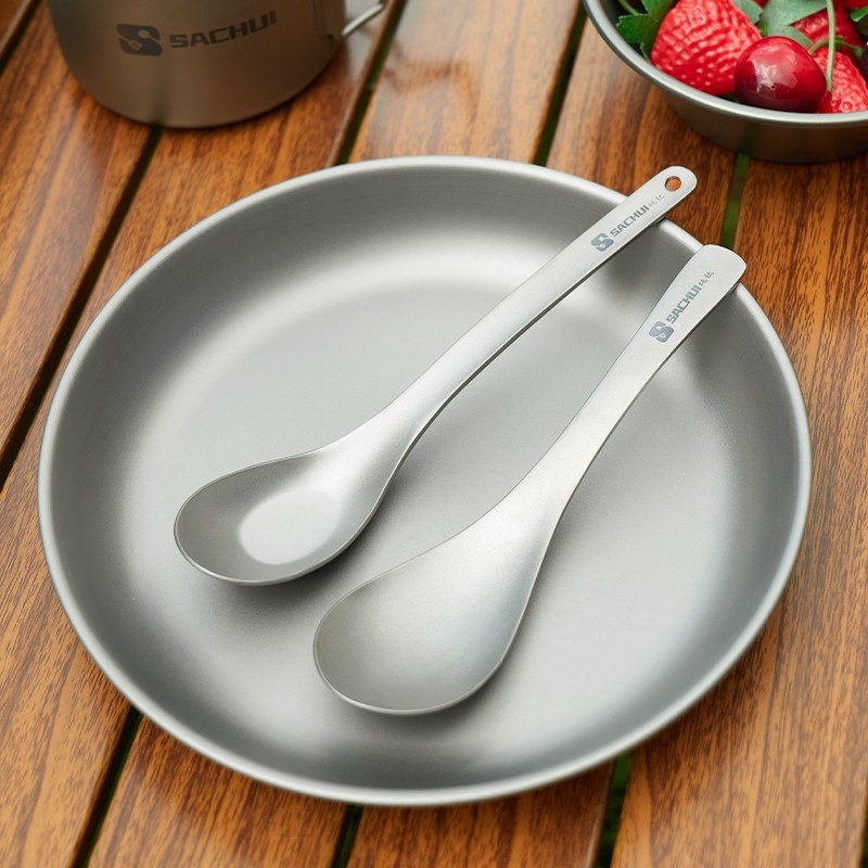 纯钛勺子户外钛勺露营便携式钛餐具家用钛金属餐勺喝汤饭勺伯爵勺