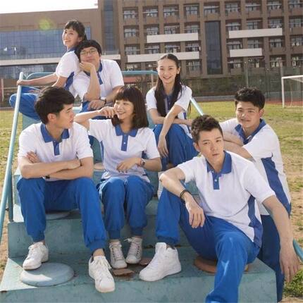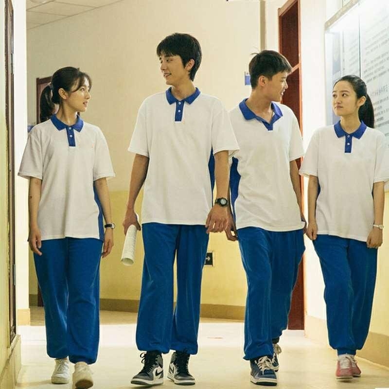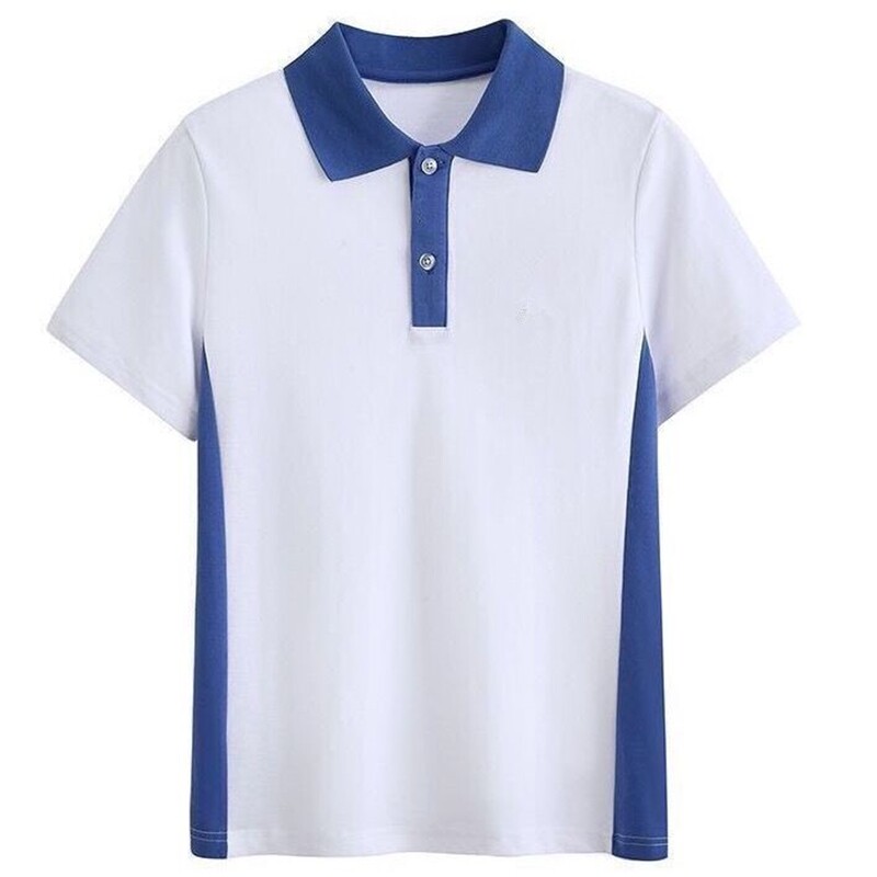 夏装情侣装你好时光同款班服撞色polo衫女短袖t恤男上衣校服宽松