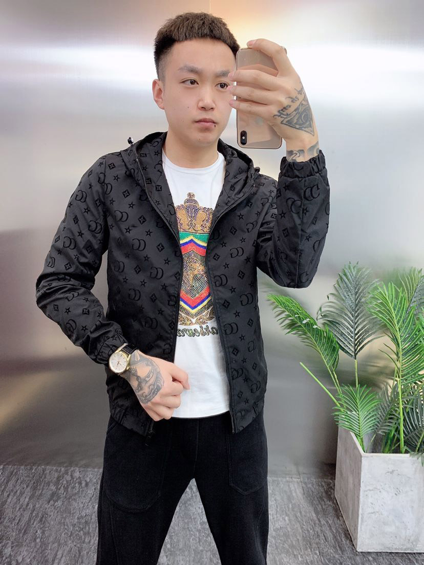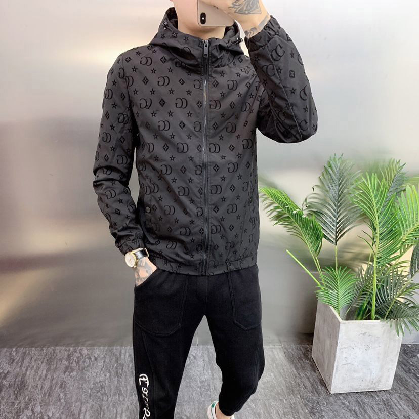 秋季新款连帽外套男士修身字母夹克时尚休闲百搭青年上衣薄款外套