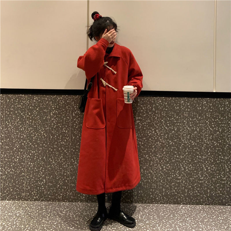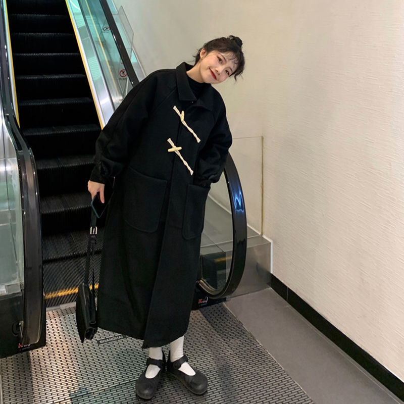 毛呢外套女秋冬百搭中长款韩版宽松牛角扣大衣2025新款潮