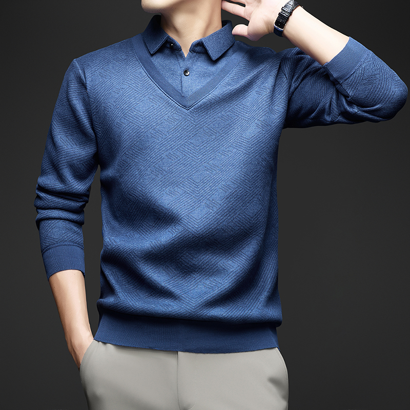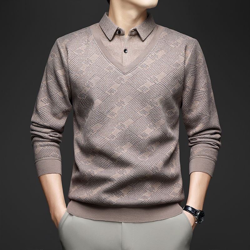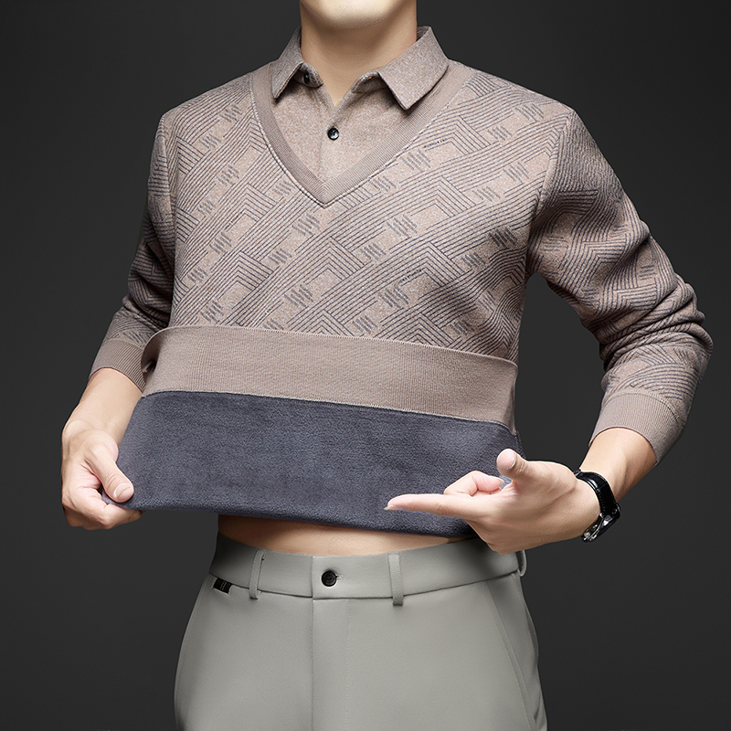 爸爸毛衣加绒加厚新款中老年男衬衫领保暖衣冬季中年男士针织衫