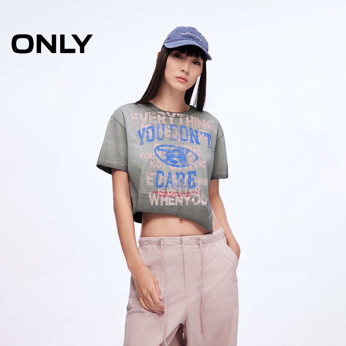 o区绫致ONLY2025夏季新款涂鸦印花纯棉宽松落肩圆领短款T恤女