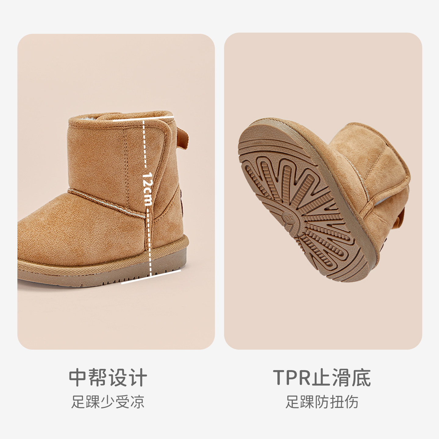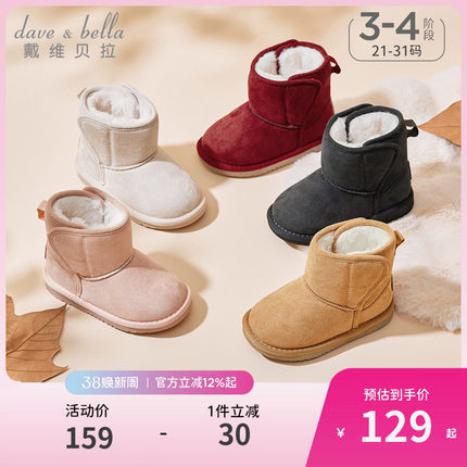 戴维贝拉儿童雪地靴男童靴子新款冬季女童棉靴棉鞋童鞋保暖冬鞋