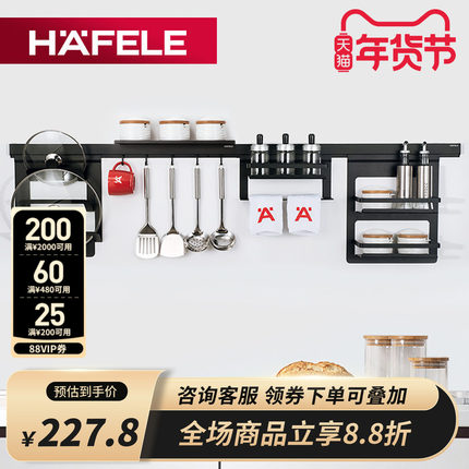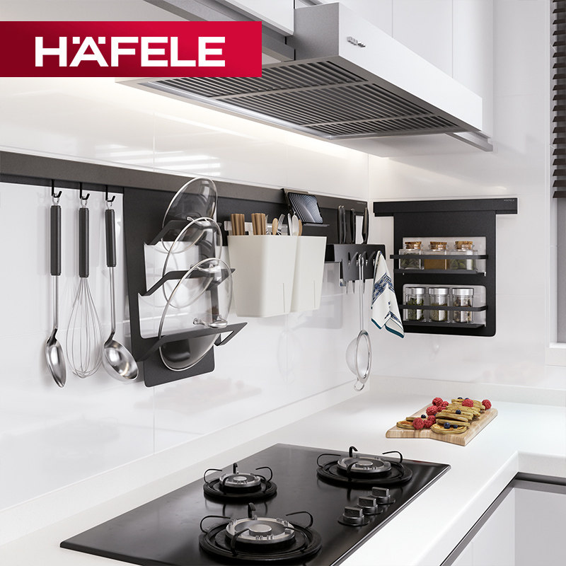 德国海福乐HAFELE厨房置物架壁挂黑色挂件多功能收纳筷子笼架刀架