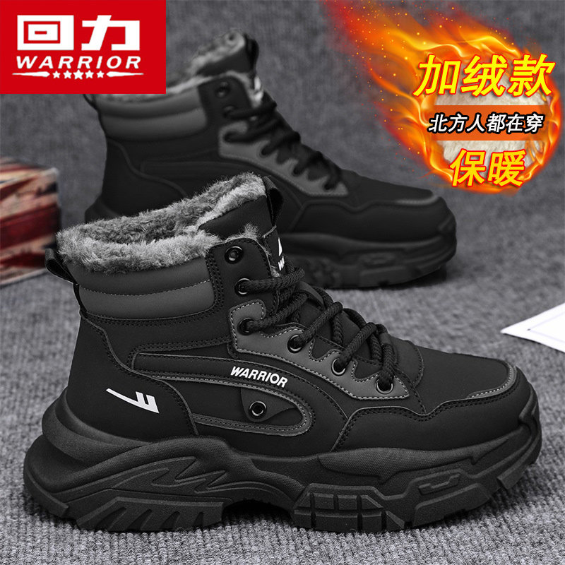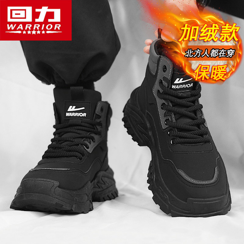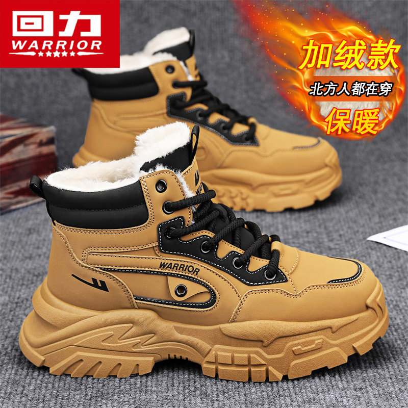 回力马丁靴男鞋秋季高帮加厚加绒保暖棉鞋中帮沙漠登山劳保工装靴
