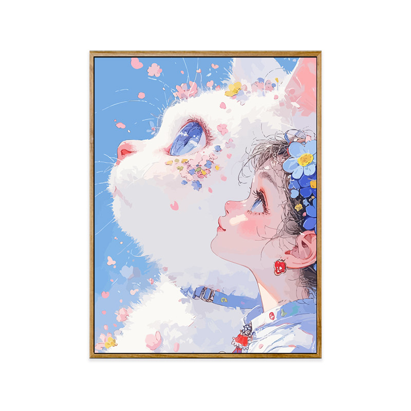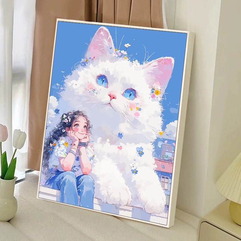 女孩和猫宫崎骏风diy数字油画手绘丙烯填充填色成人解闷卡通装饰
