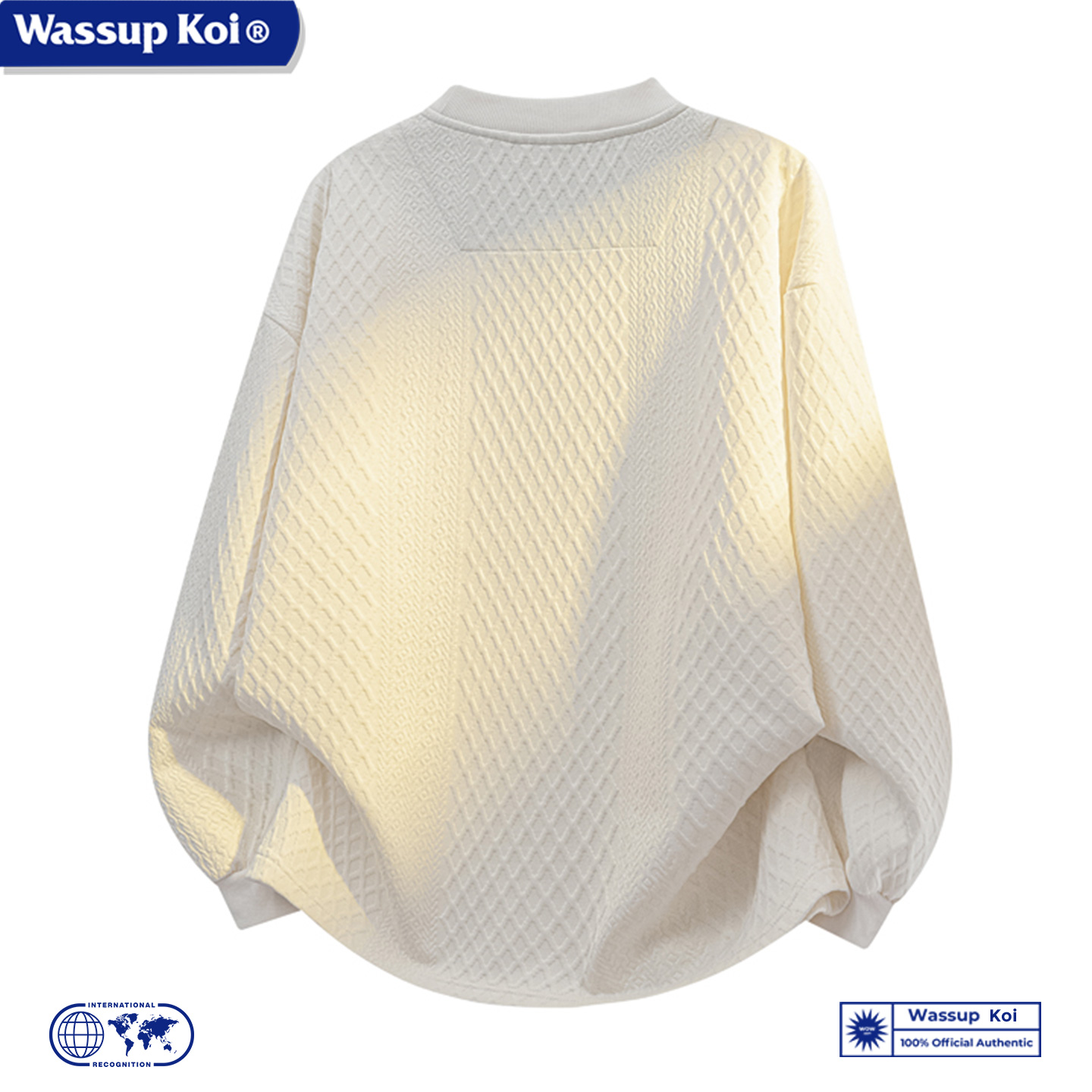WASSUP KOI联名美式菱形格圆领卫衣男春秋季潮牌宽松休闲套头上衣