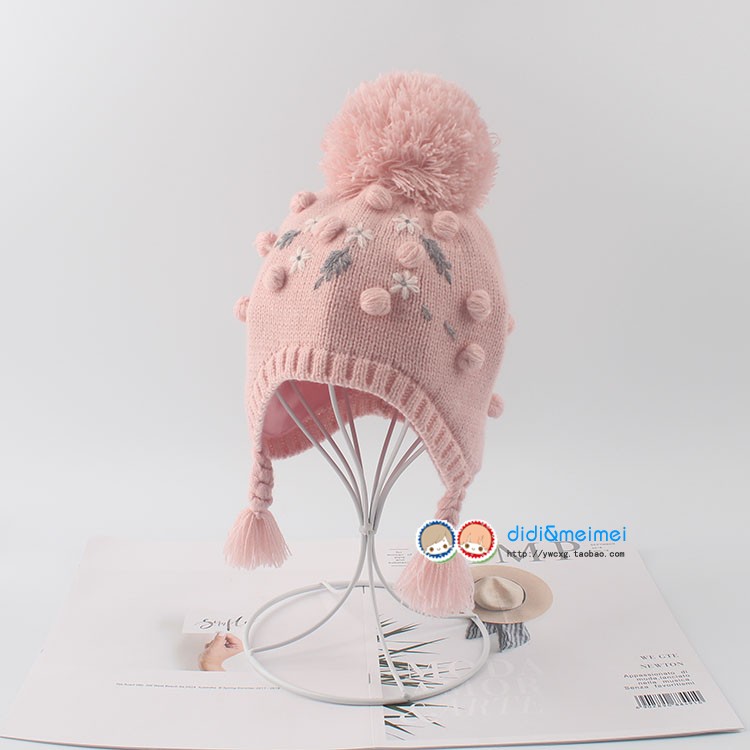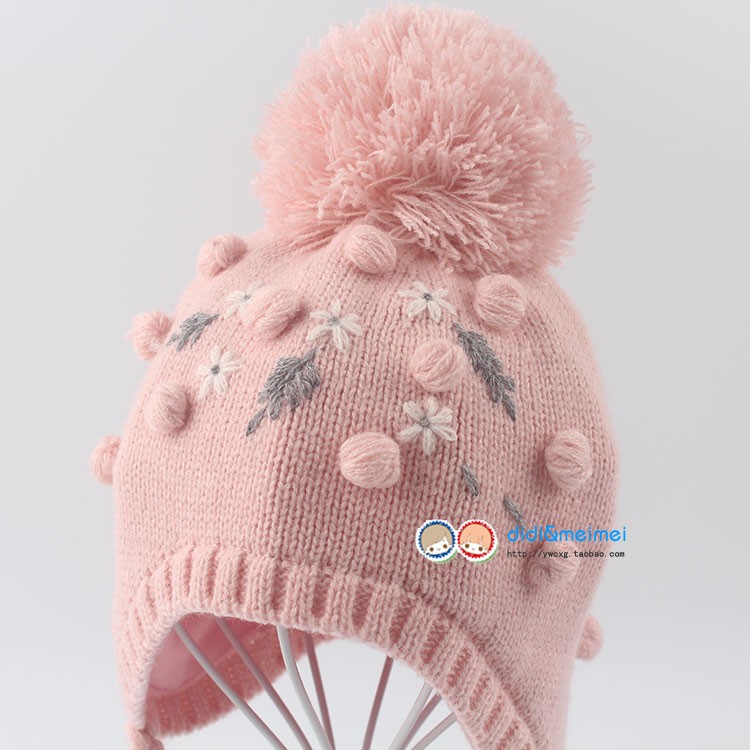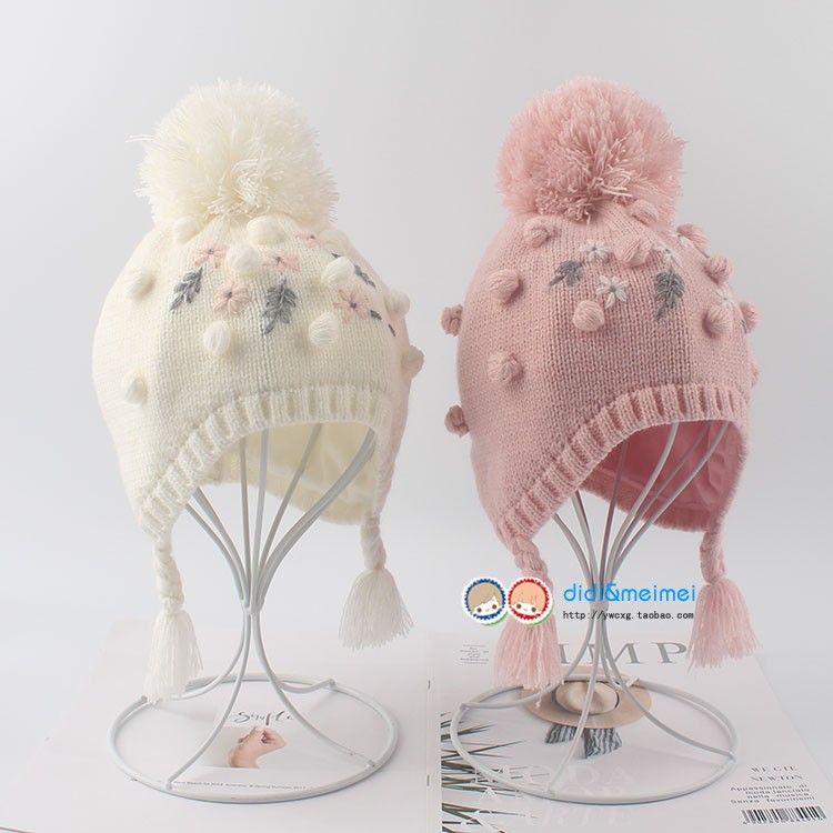 秋冬保暖加绒内里淑女针织宝宝公主毛线帽子 女童护耳绣花帽子