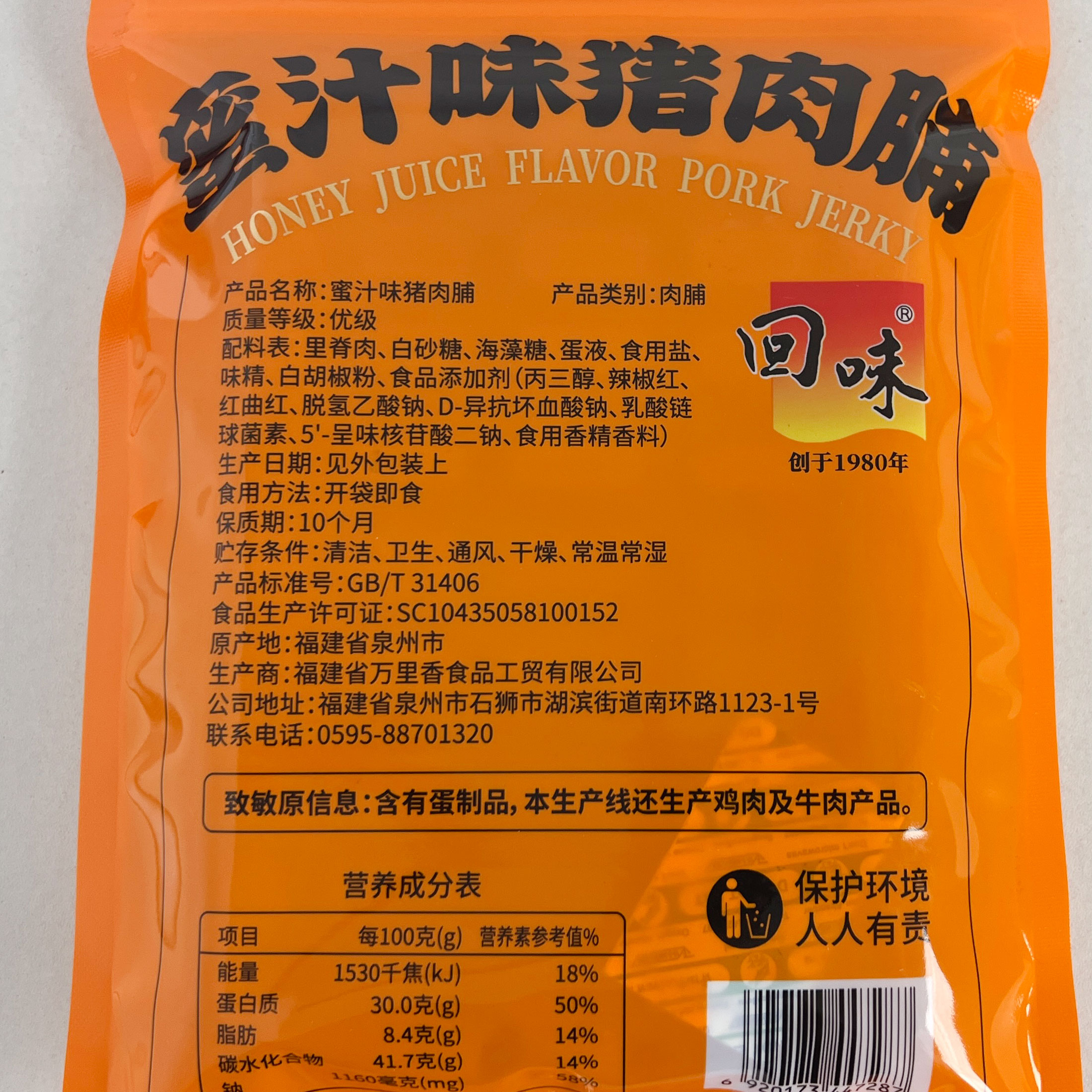 回味猪肉脯闽南特产原切猪肉干石狮万里香200g袋装原味蜜汁味零食