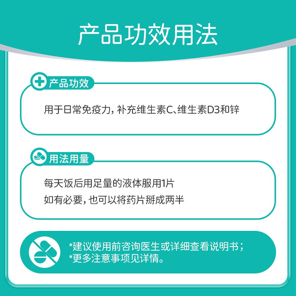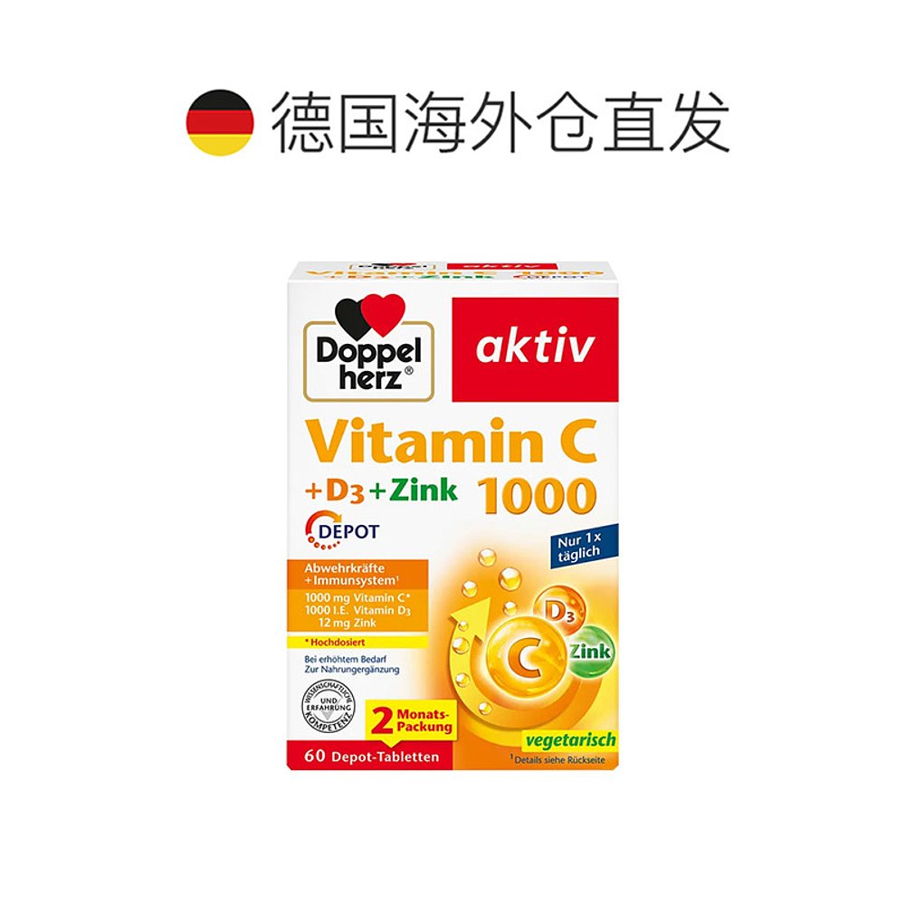 欧洲直邮德国双心Doppelherz维生素C1000维D3锌片60粒免疫力增强