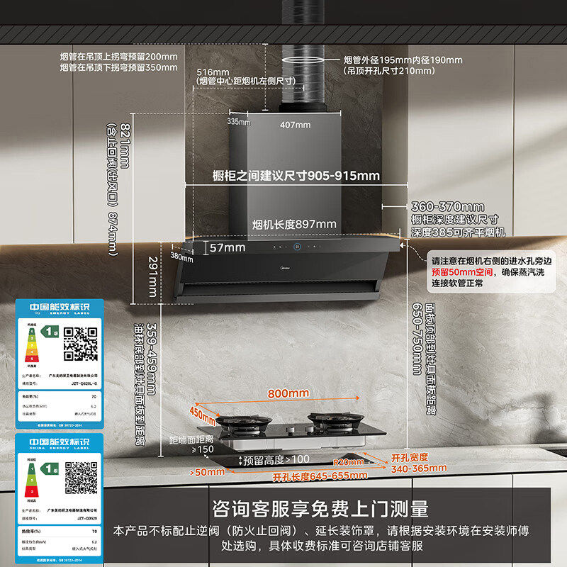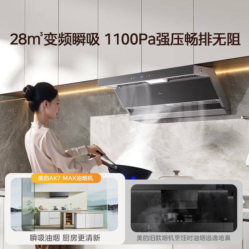 美的AK7max蒸汽洗油烟机顶侧双吸家用烟灶套装烟机大吸力AK5max