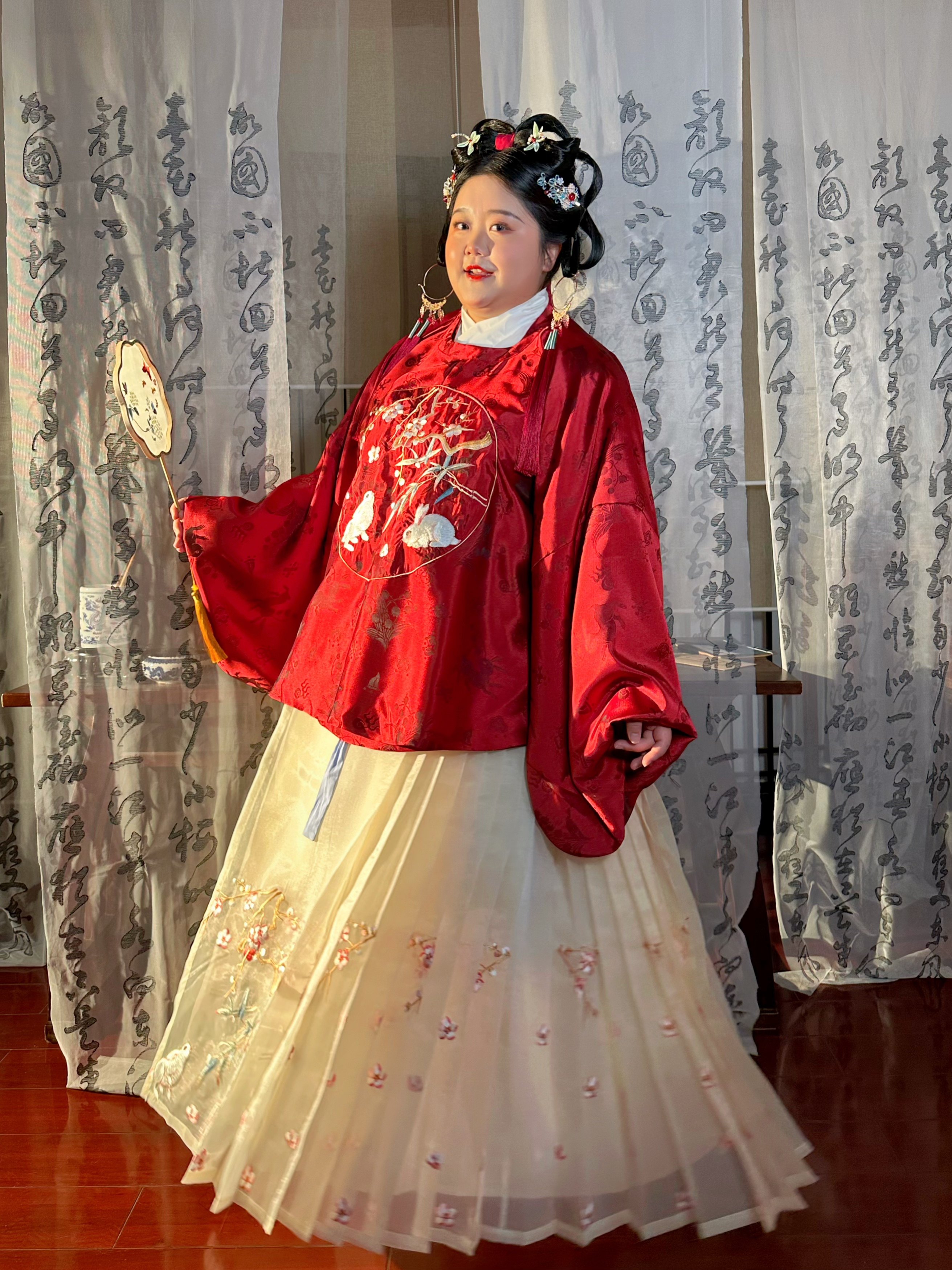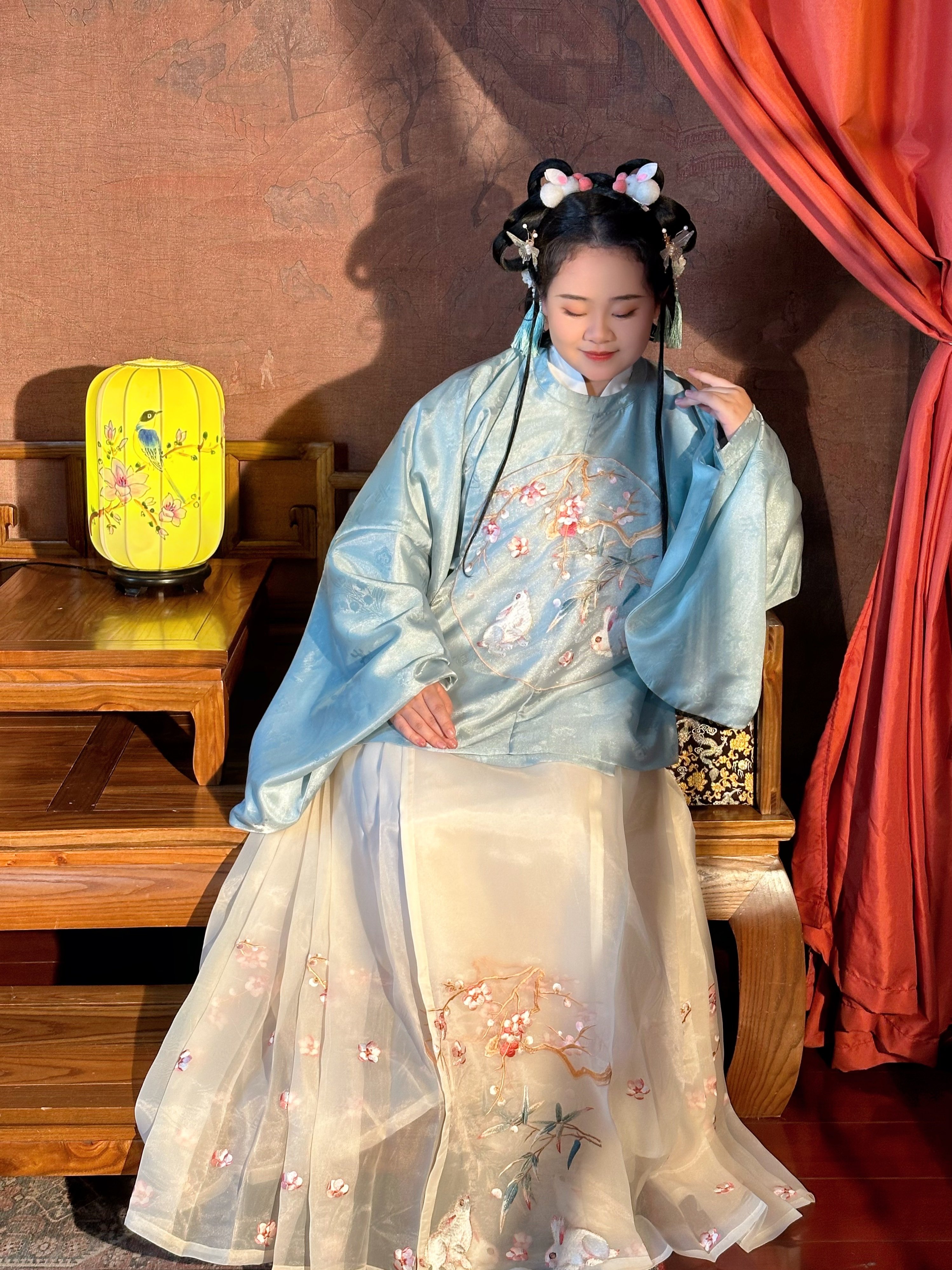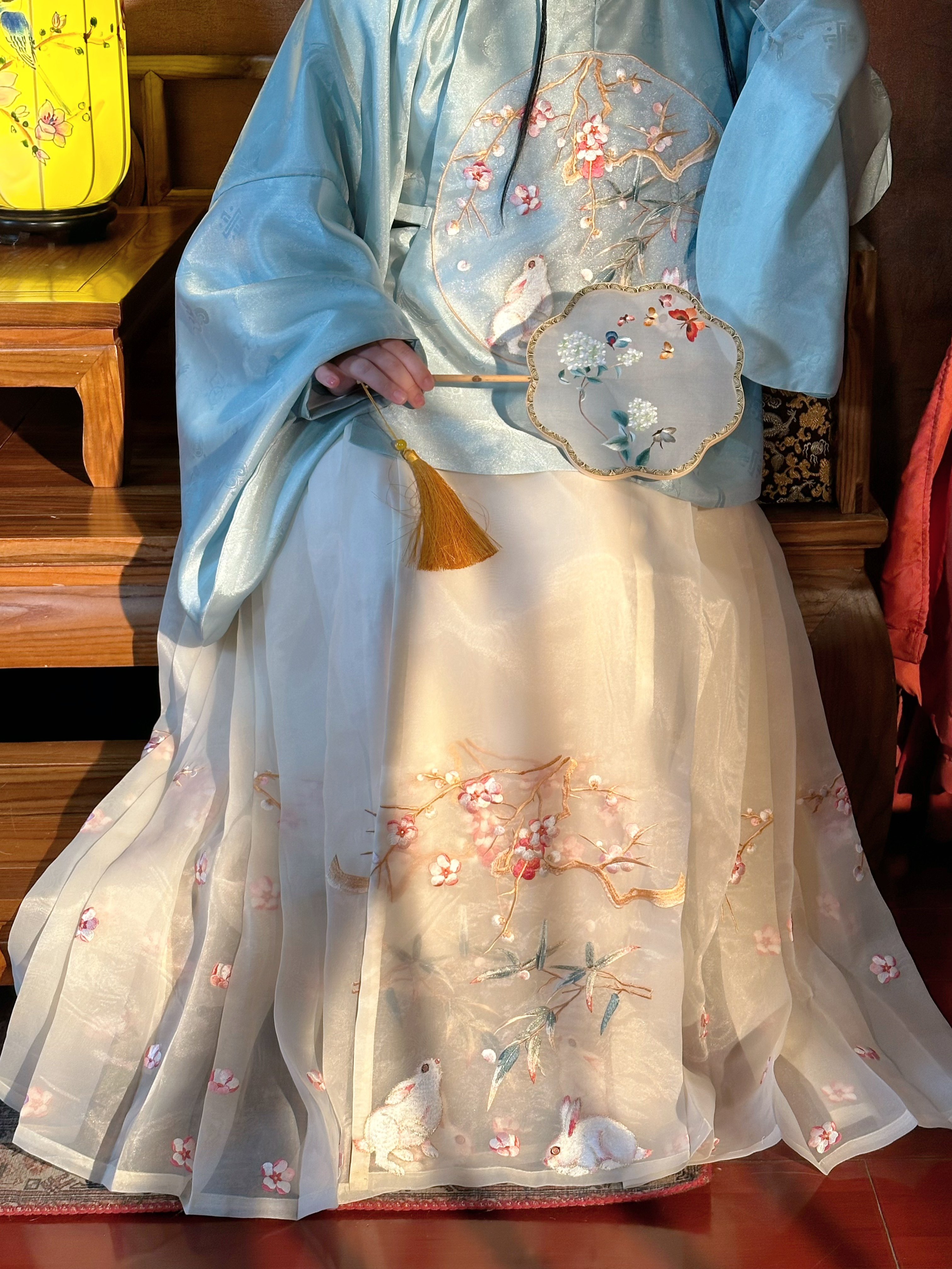 现货)大康原创设计【幸福小兔】大码汉服圆领补刺绣马面闺蜜装
