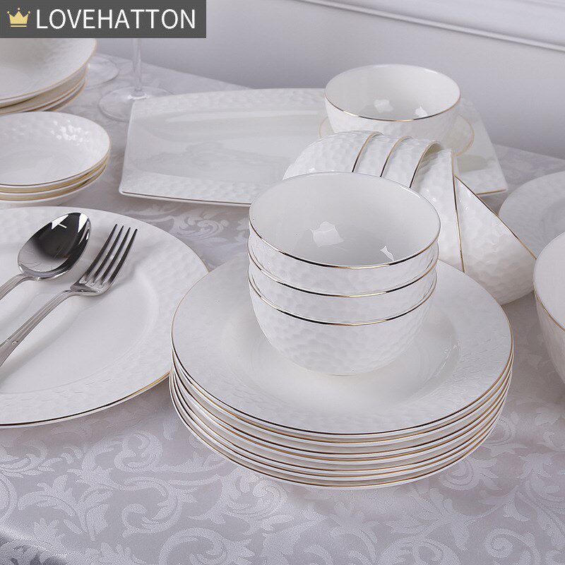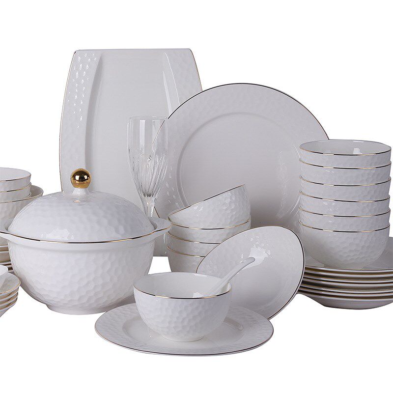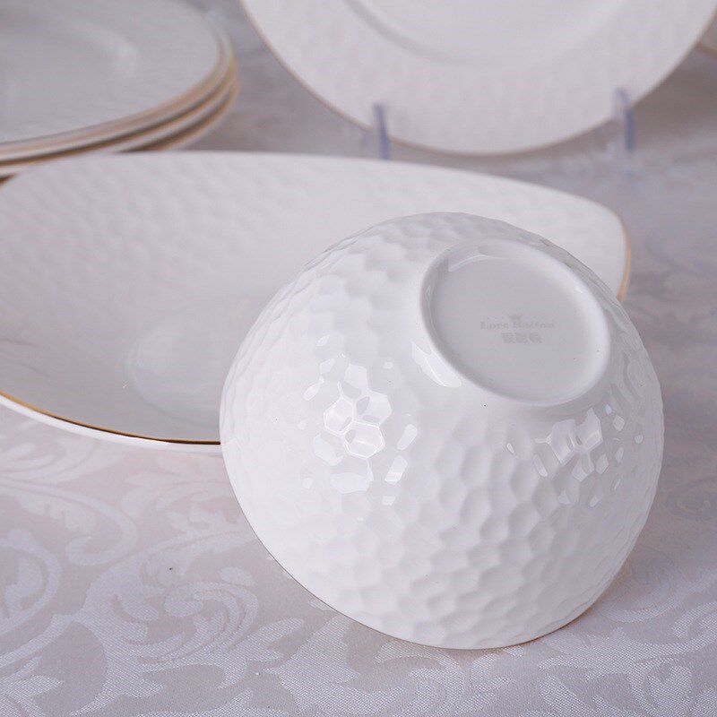欧式金边浮雕欧式骨质瓷器v陶瓷餐具家用送礼餐具套装组合56头