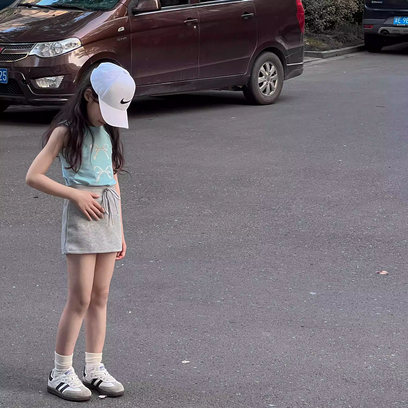 女童夏裙半身裙2025秋款韩版短裙儿童灰色包臀裙防走光一步裙伞裙