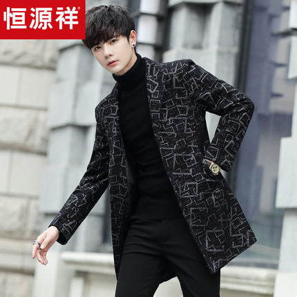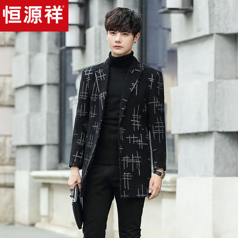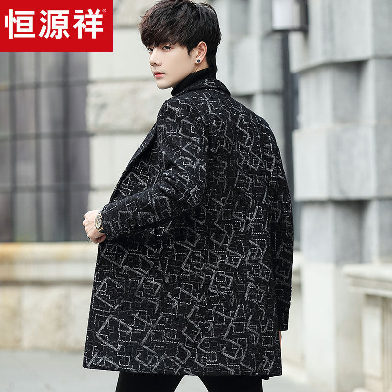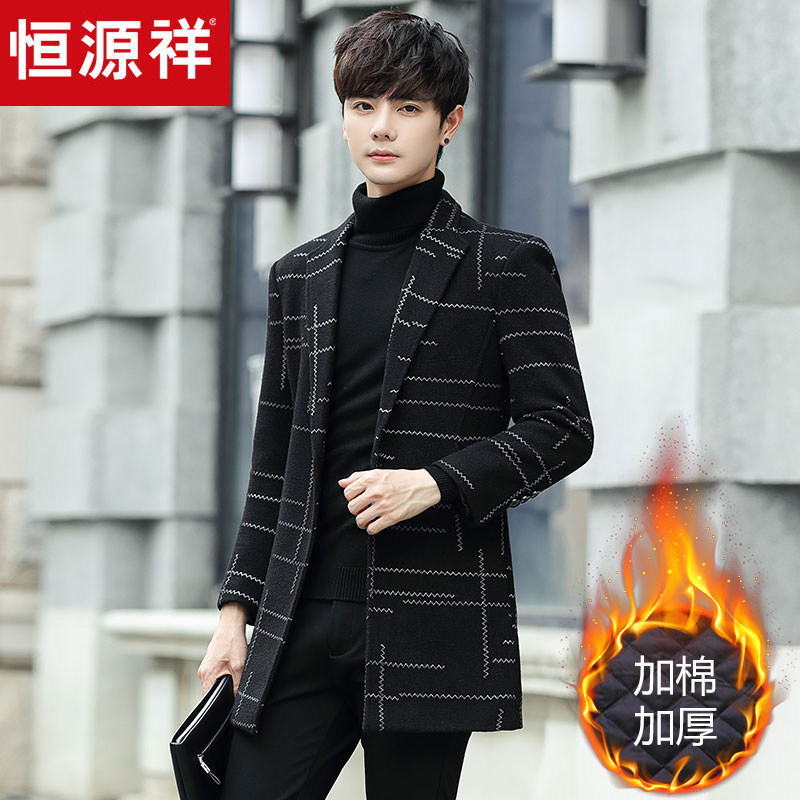 恒源祥2025加厚新款男士呢子大衣潮流休闲春秋季中长款外套风衣男