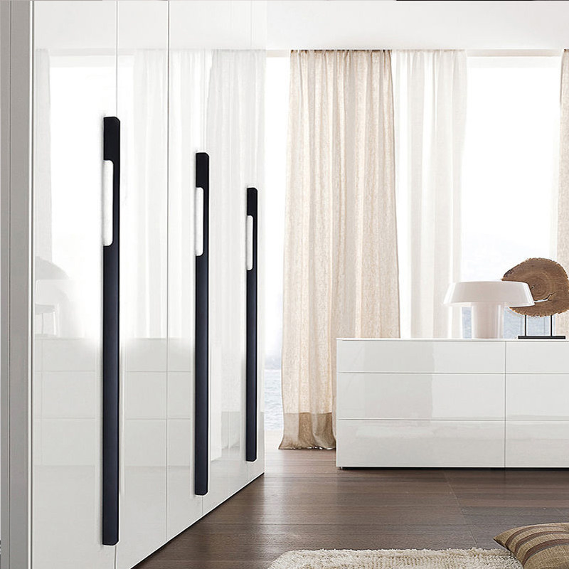 衣柜门长拉手实心橱柜顶柜吊柜鞋柜抽屉黑色铝合金门把手现代简约