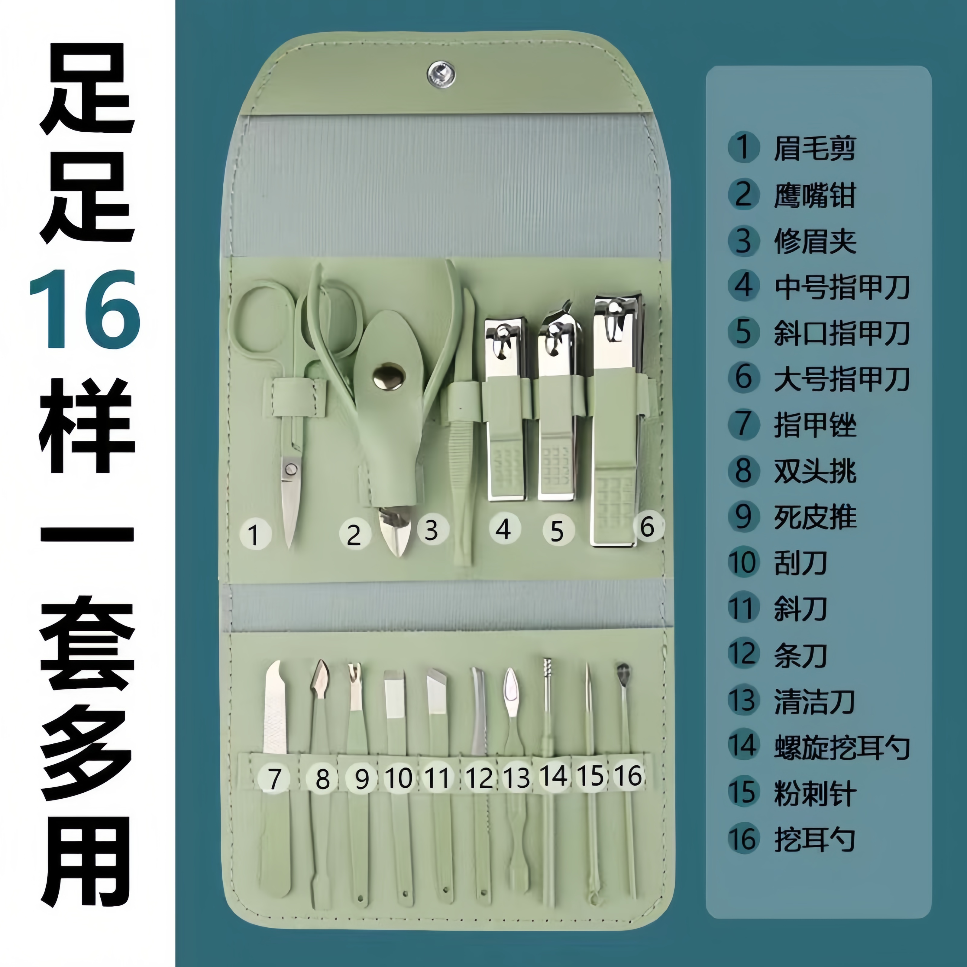 新款多功能指甲刀16件套 美甲工具套装家用个人护理便携修甲工具
