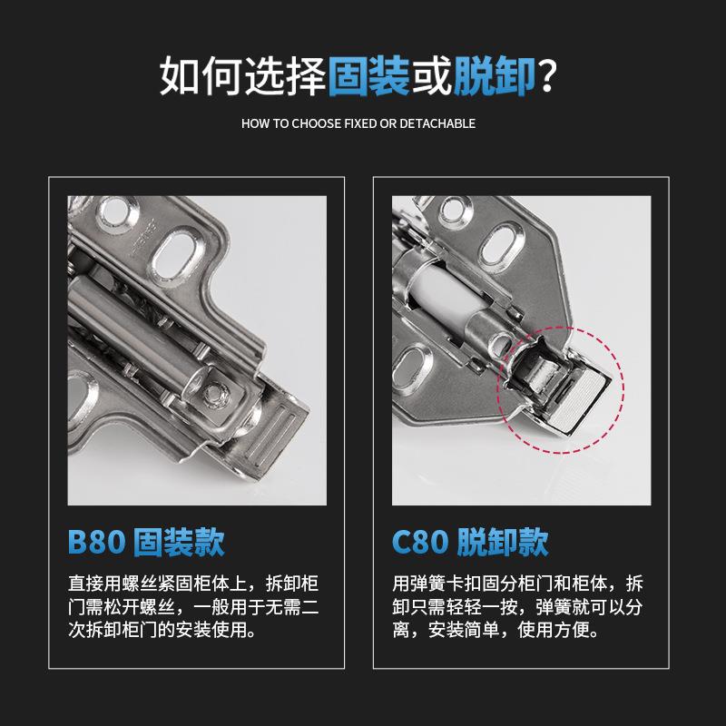 dtc东泰铰链液压阻尼缓冲二段力门铰C80S80不锈钢橱柜衣柜门合页