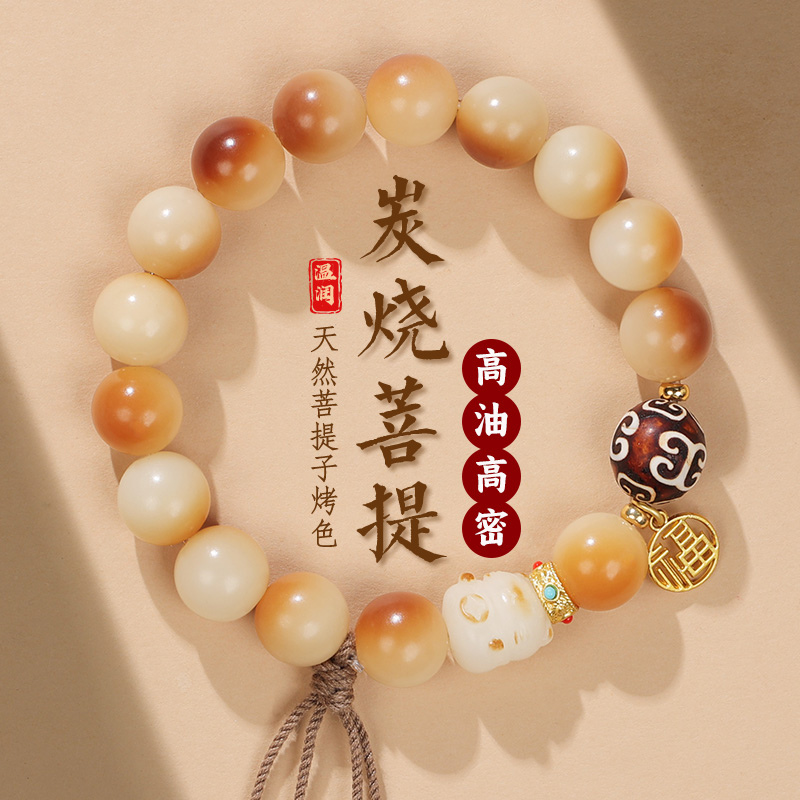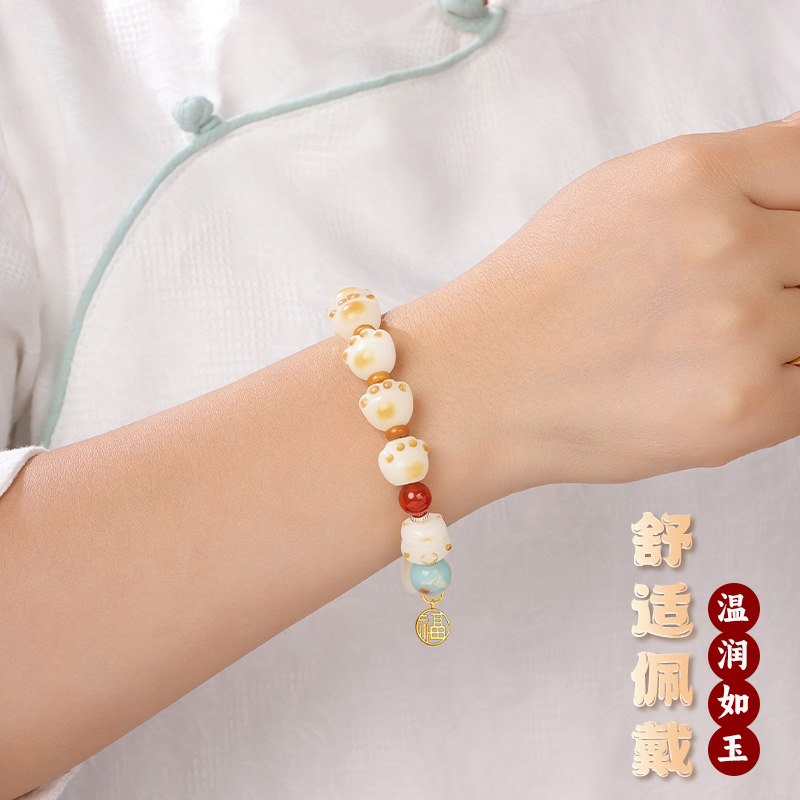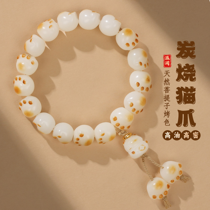 【杭州灵隐】天然白玉菩提炭烧猫爪抓钱文玩手串男女好运招财手链