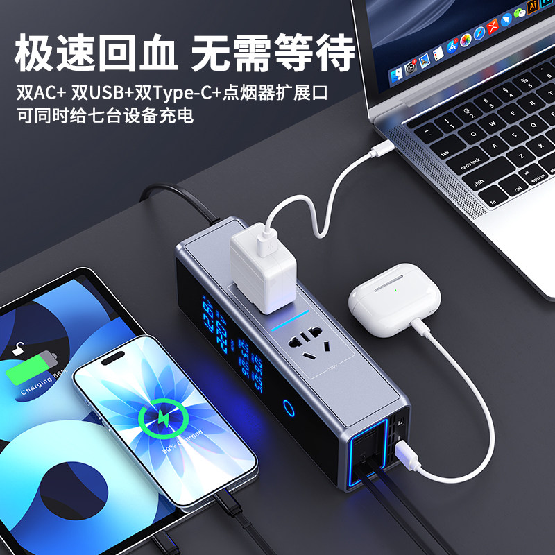 车载充电器12V24V转220V纯正弦波大功率汽车逆变器点烟器转换快充