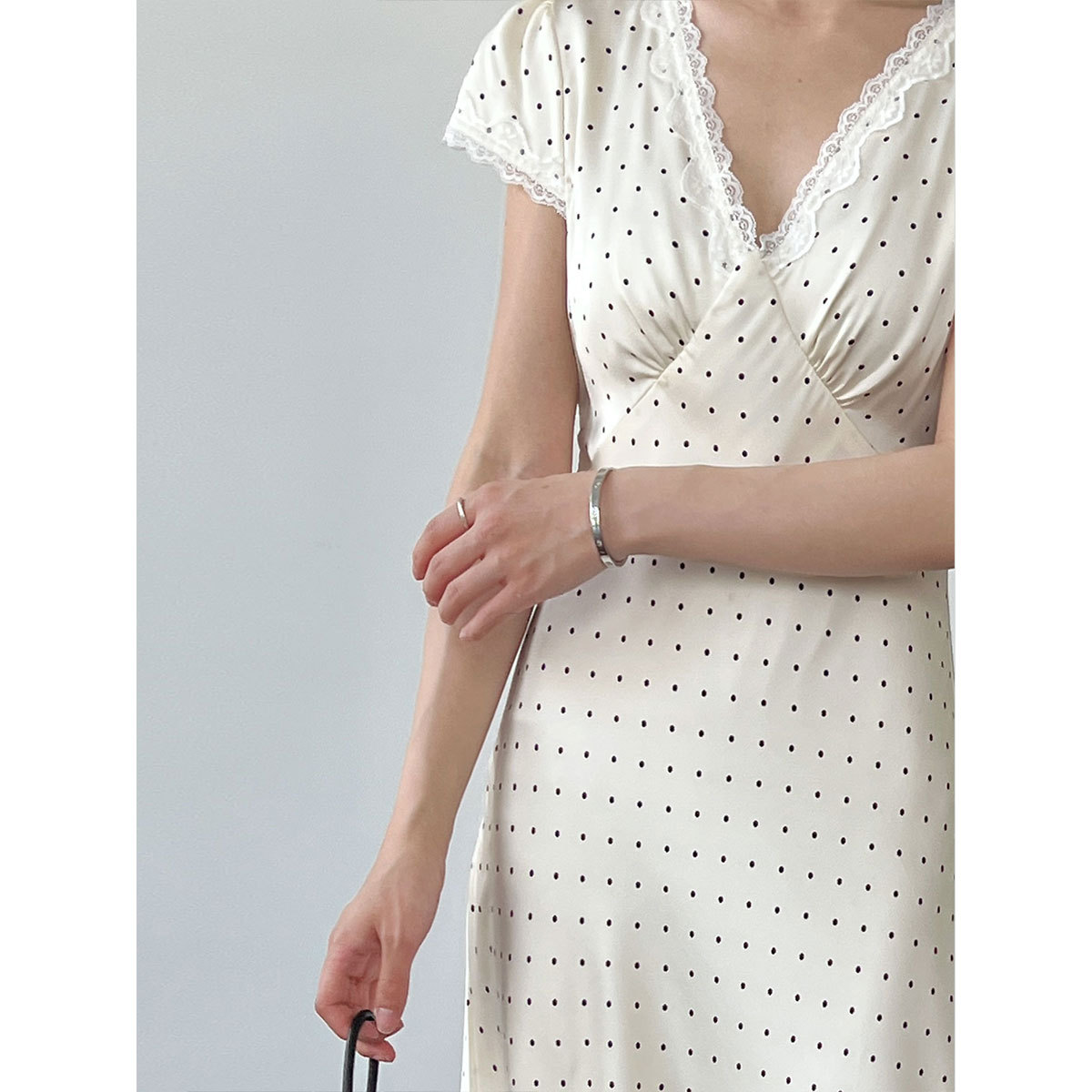 法式领蕾丝拼接连衣裙女夏季新款波点气质收腰显瘦长裙