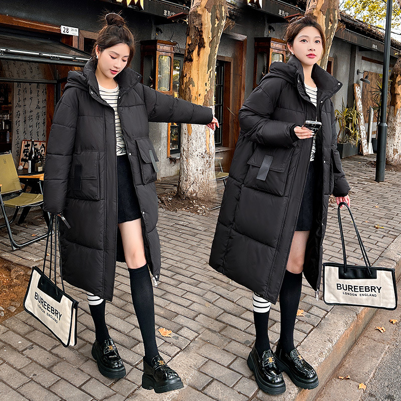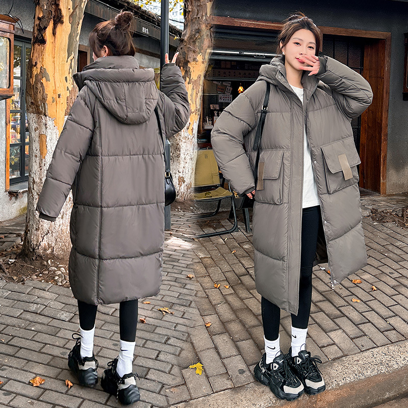 新款韩版宽松连帽羽绒棉服女中长款加厚时尚百搭大口袋冬装外套潮