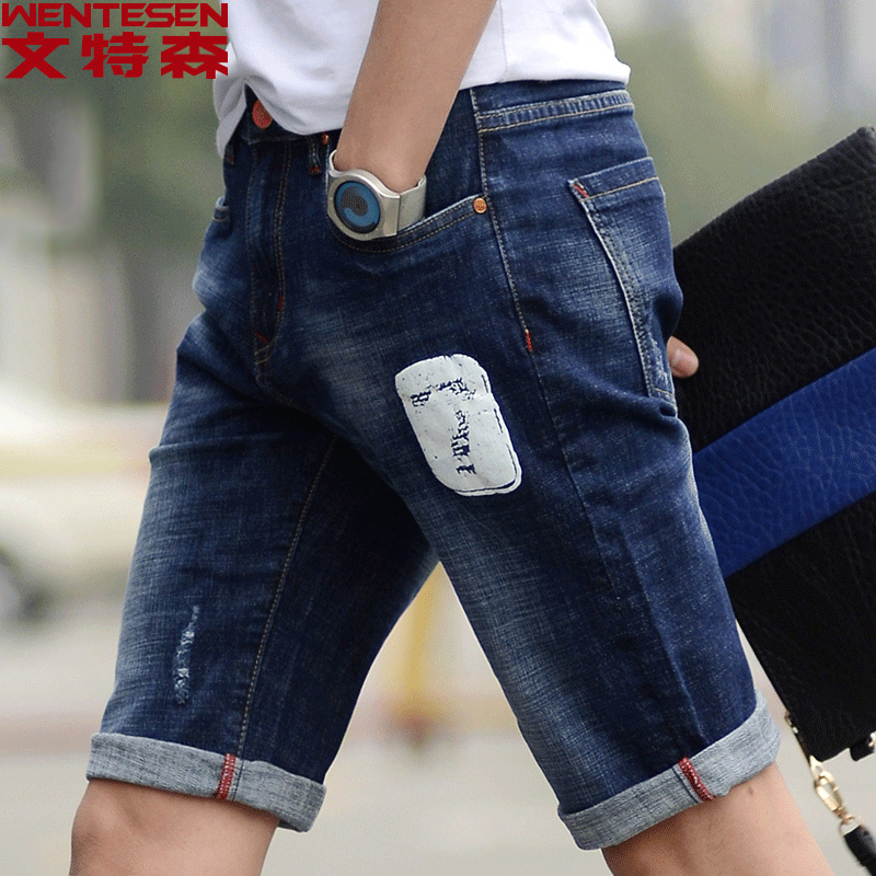弹力薄款牛仔短裤男夏季宽松直筒休闲五分裤修身型中裤马裤子男