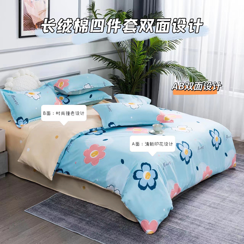长绒棉四件套生态磨毛加厚被套印花2米双人10O0纯棉四件套床上被