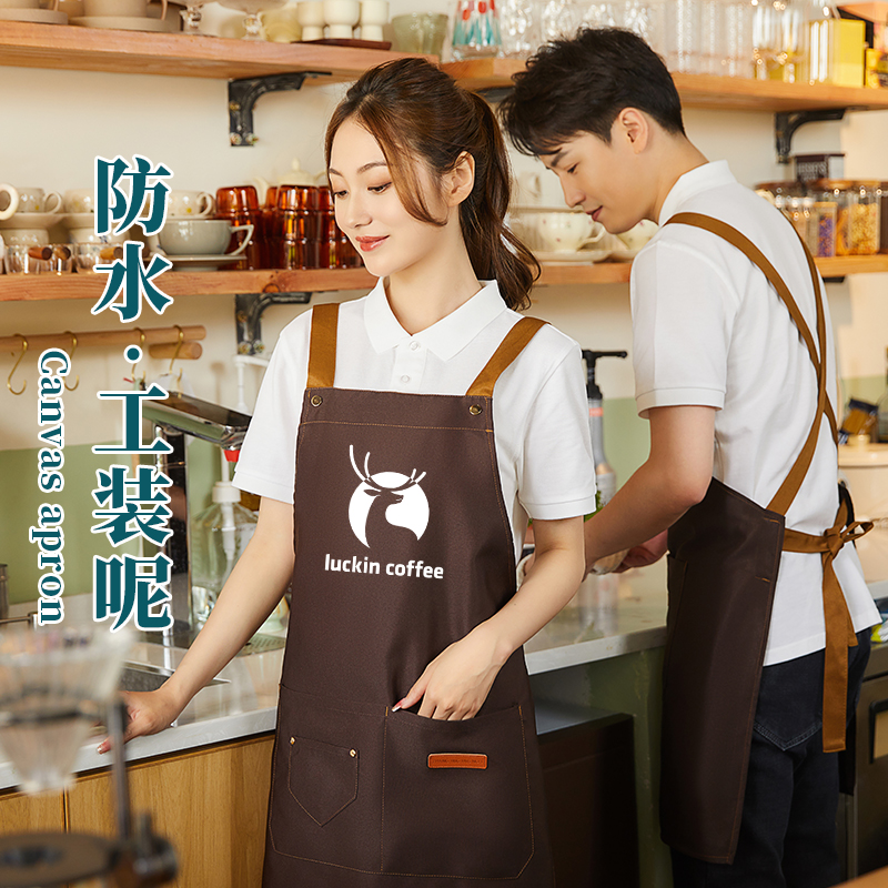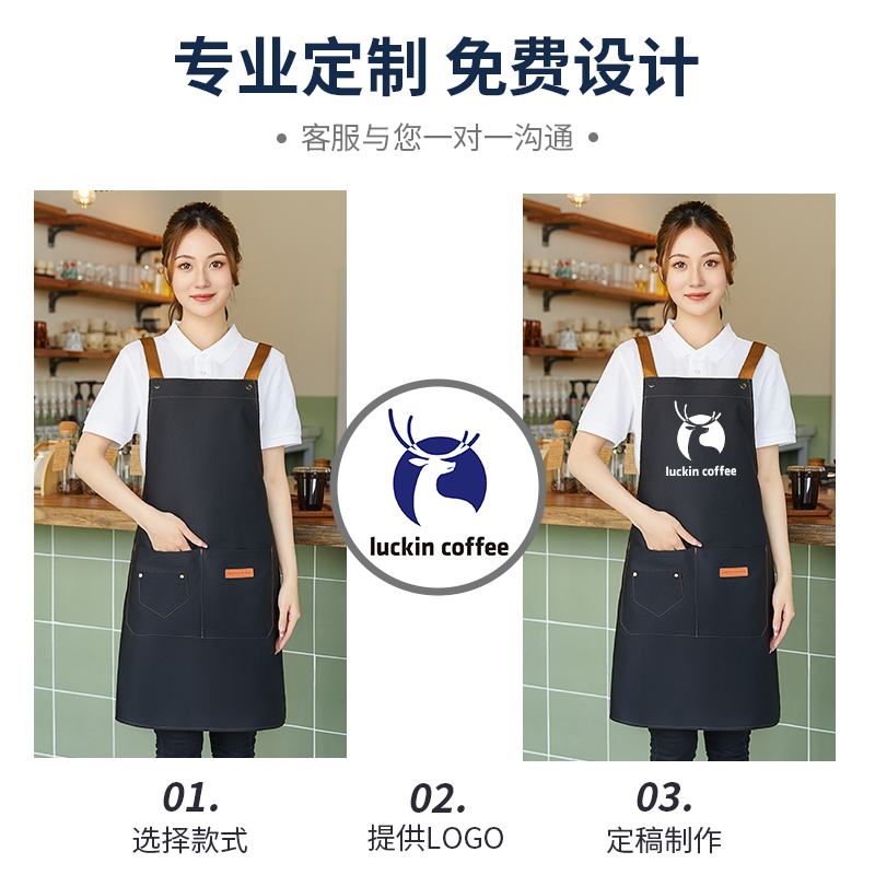 围裙工作服印logo美食街饭店面馆餐厅食堂小吃外卖服务员围腰定制