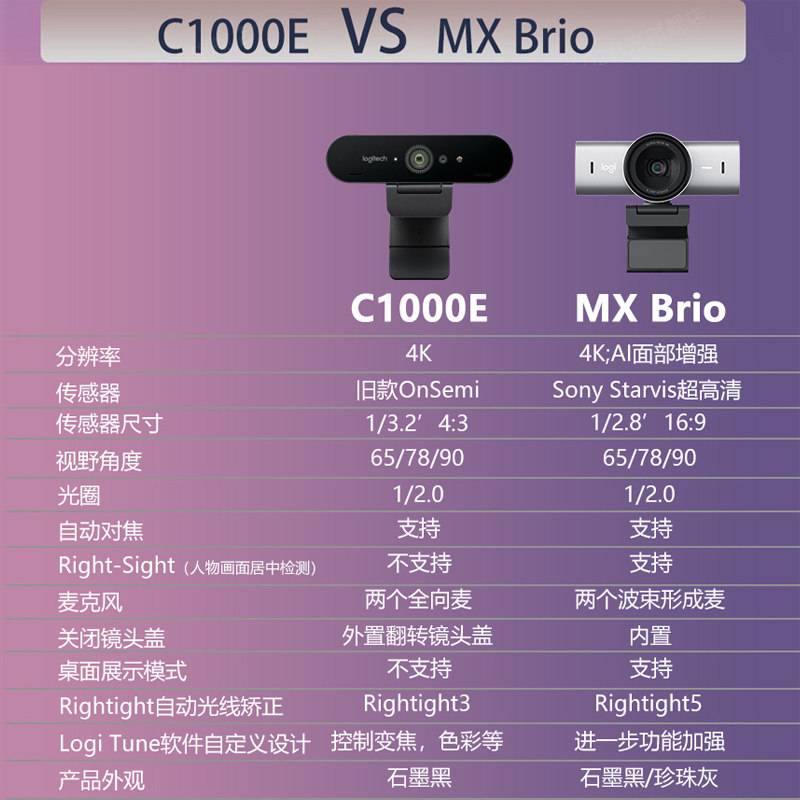罗技MX Brio 4K超高清直播摄像头美颜主播笔记本台式电脑摄影拆包