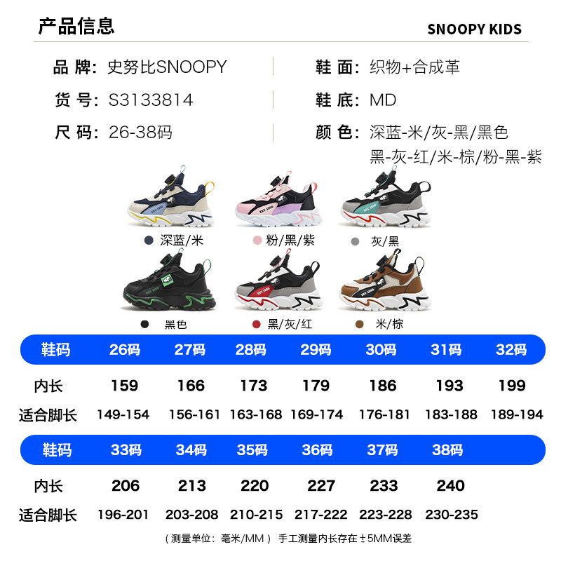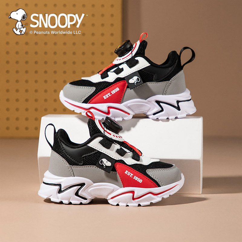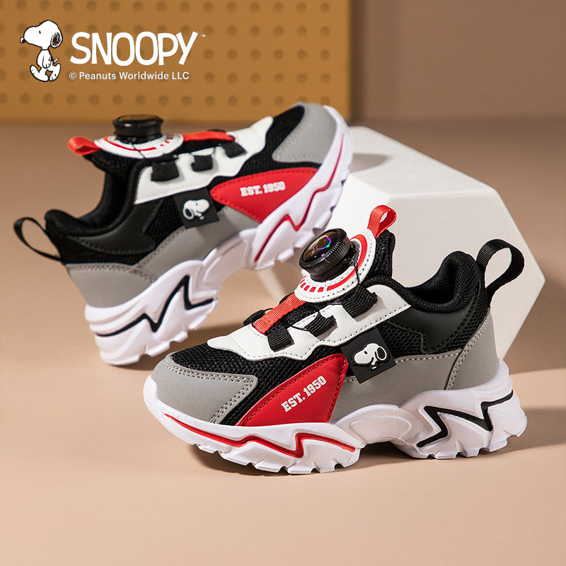 史努比童鞋男童网面运动鞋春秋2025新款儿童鞋子女童跑步鞋旋转扣