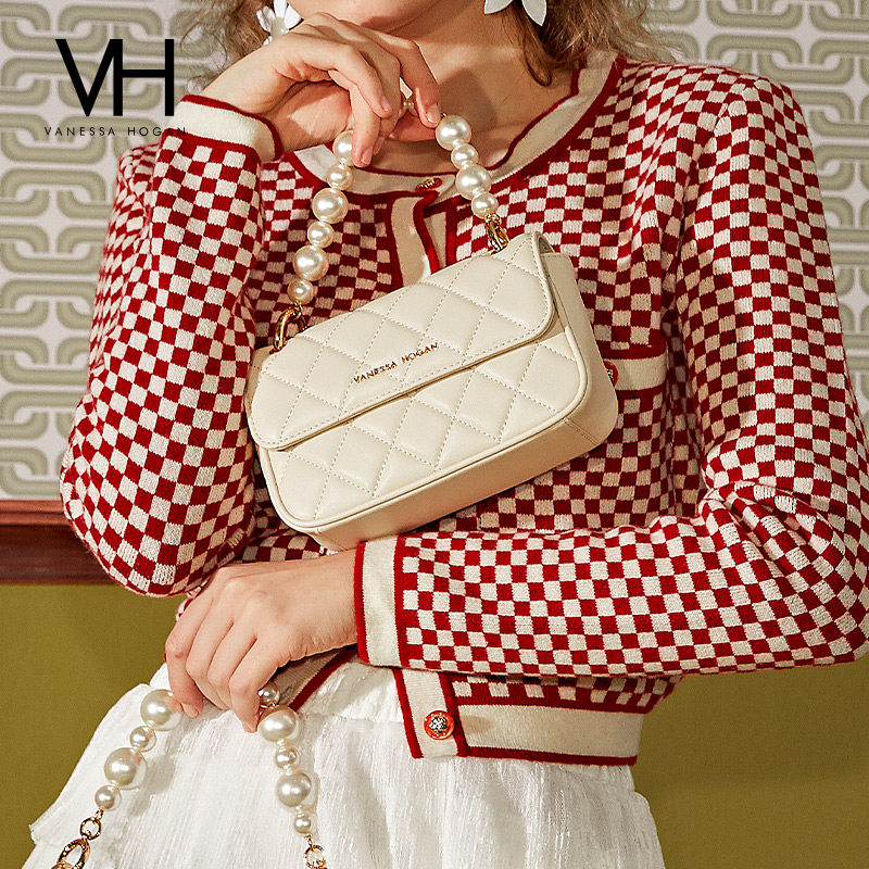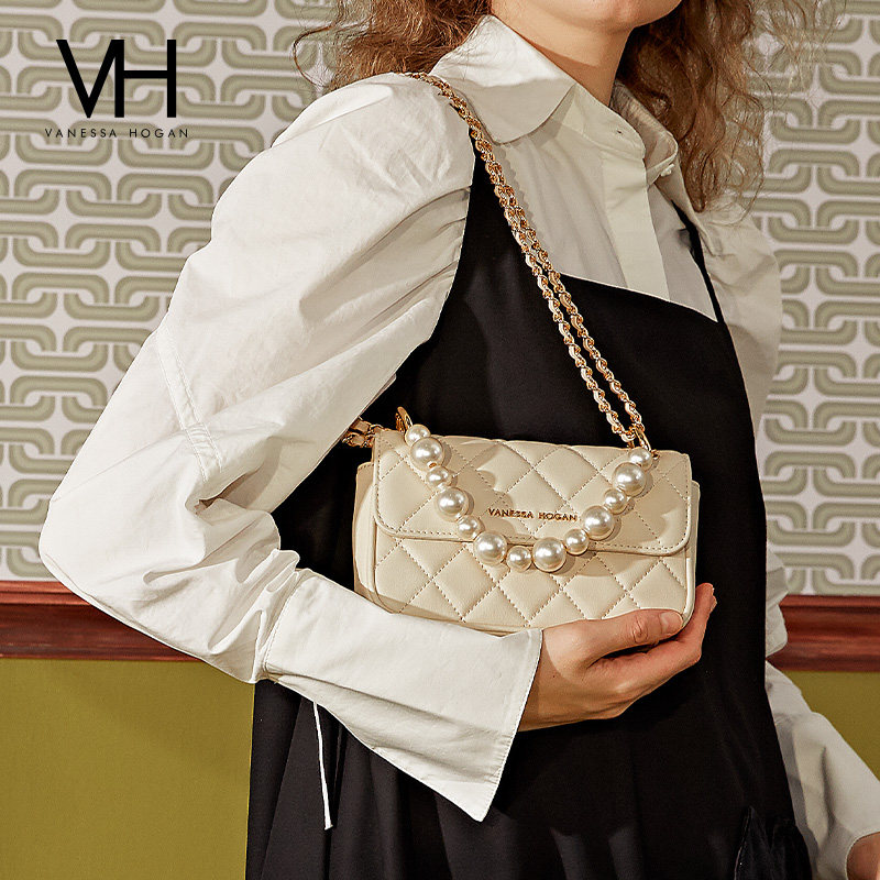 VH包包女包优雅知夏软包时尚珍珠手提包轻奢菱格腋下单肩包斜挎包