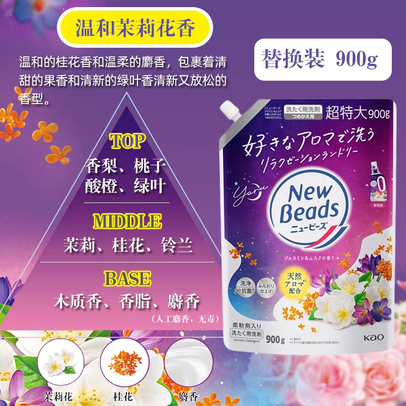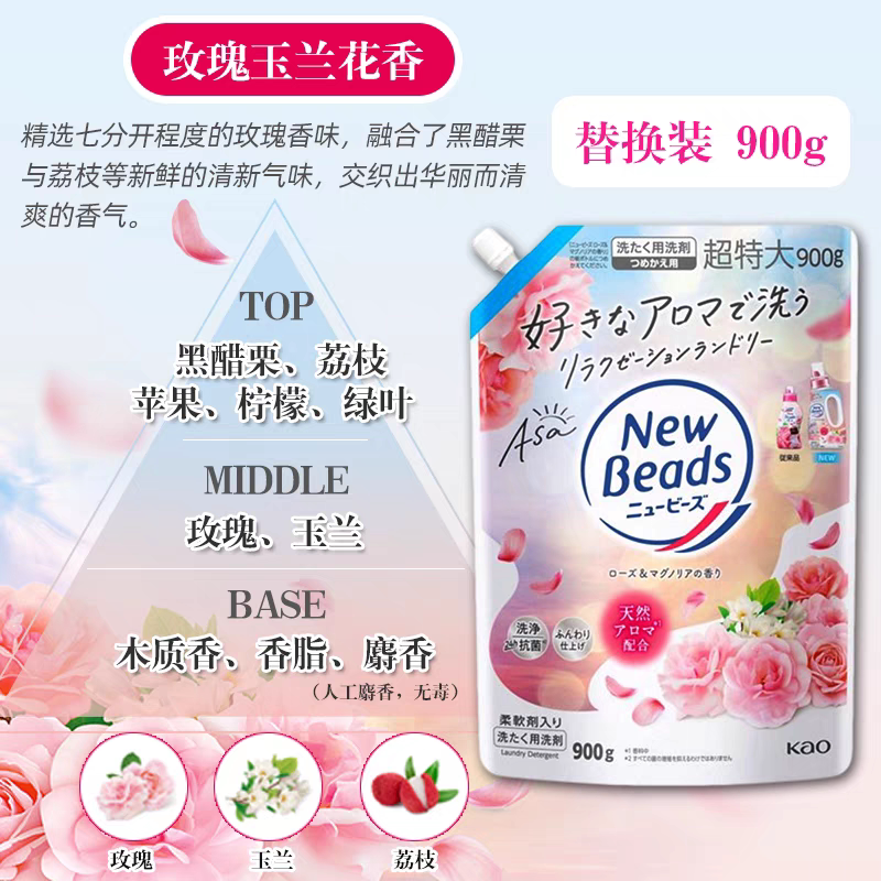 日本花王洗衣液替换装铃兰香进口衣物含柔顺剂玫瑰去污袋装1160g