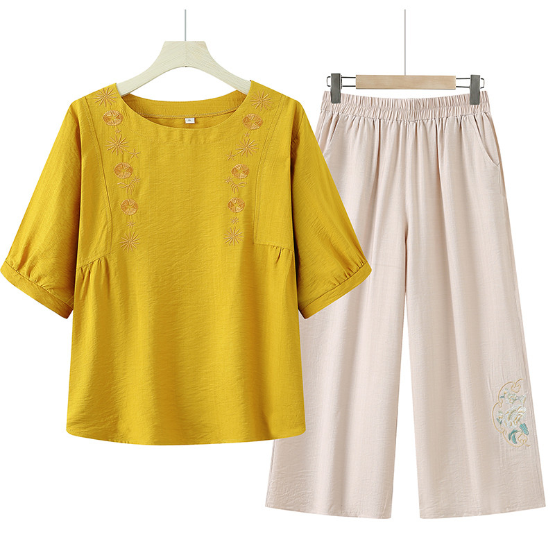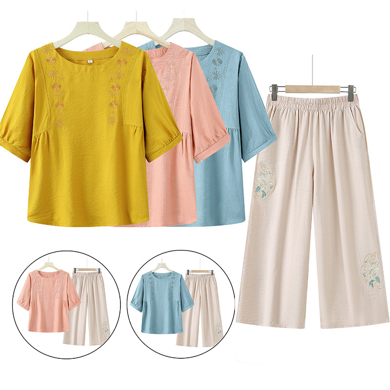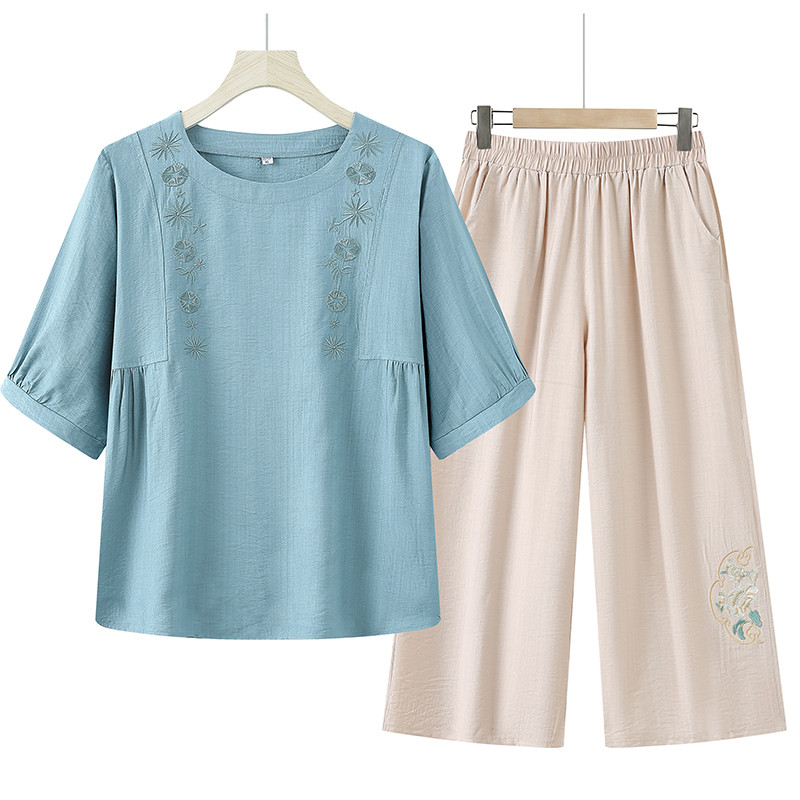 妈妈夏装洋气套装棉麻2025新款