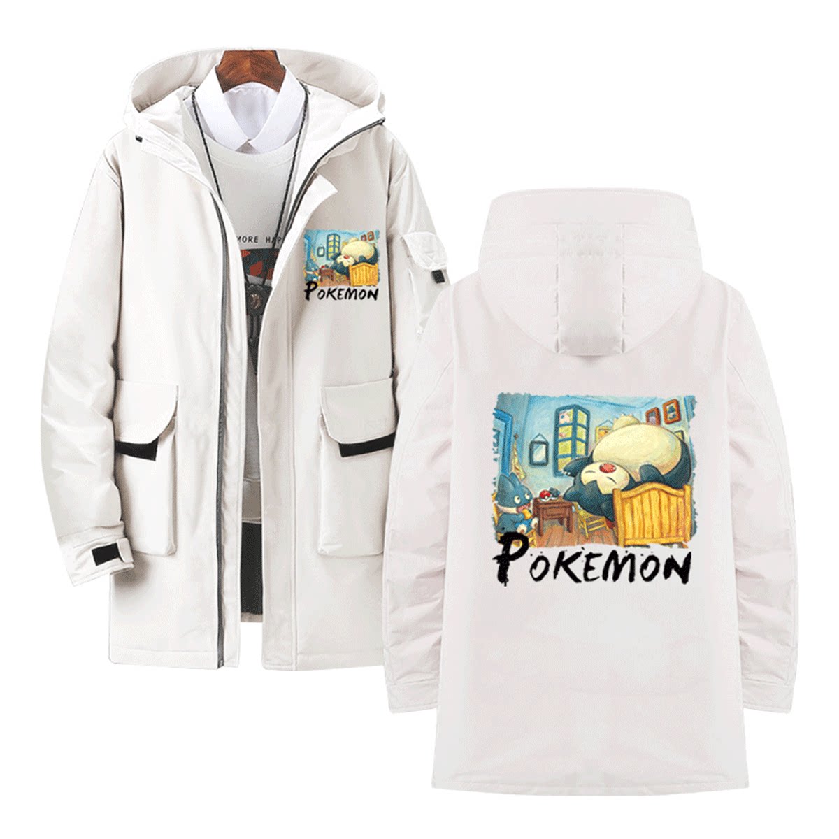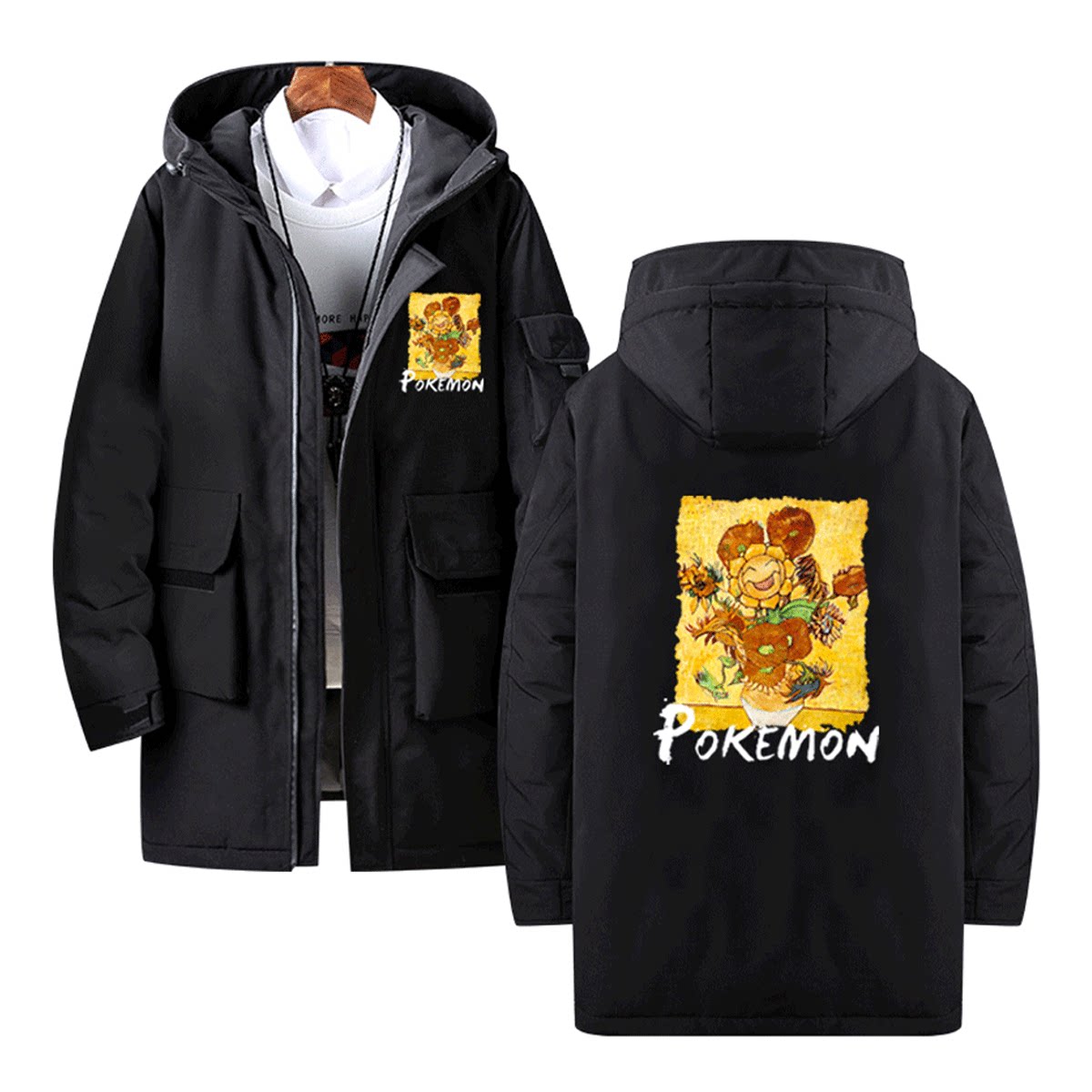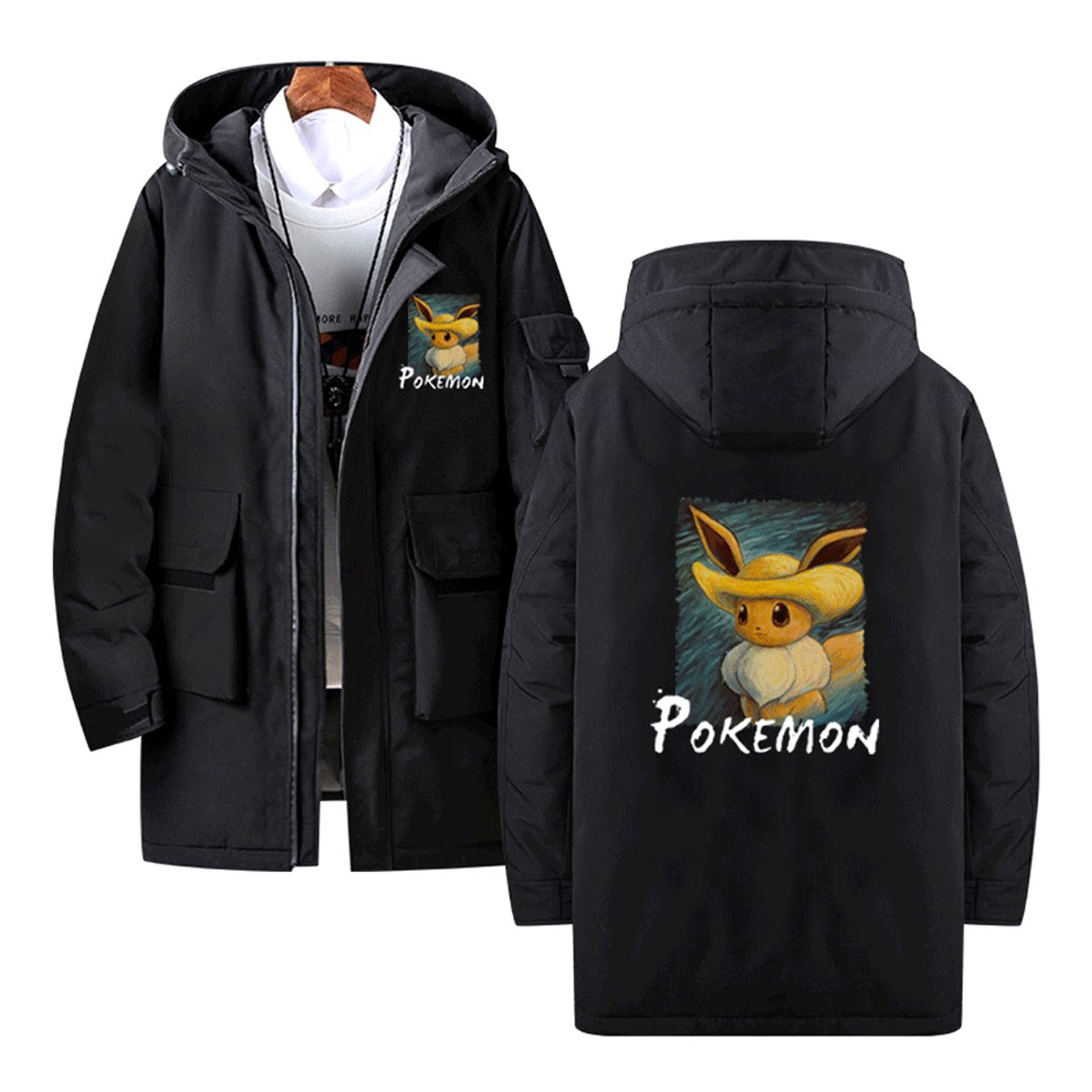 梵高宝可梦联名神奇宝贝动漫卡通情侣男女可定制中长款保暖羽绒服