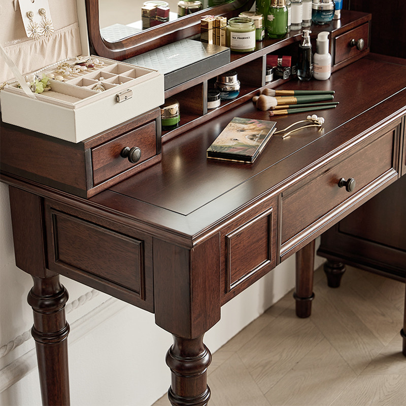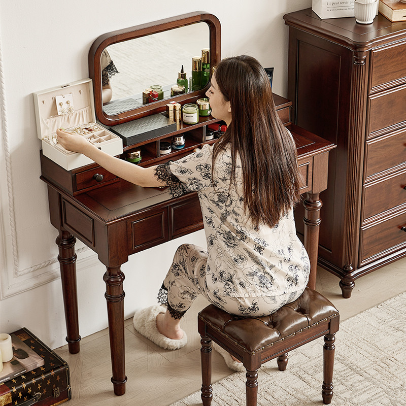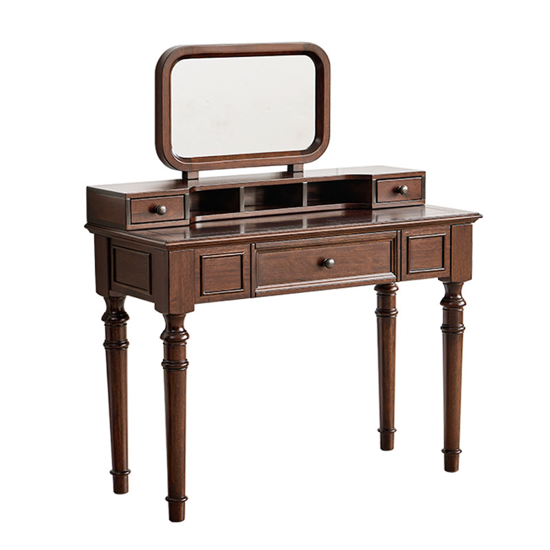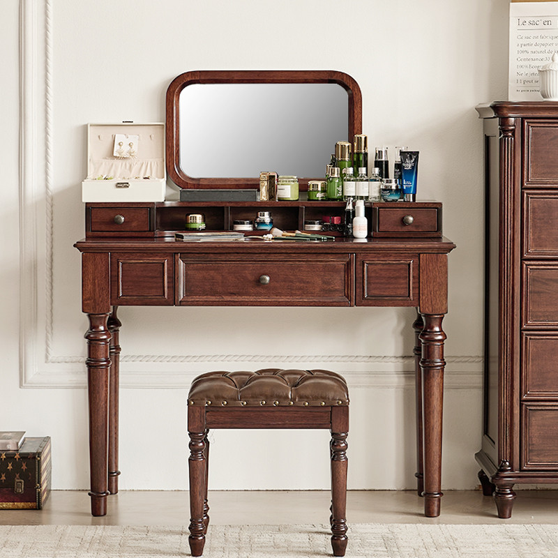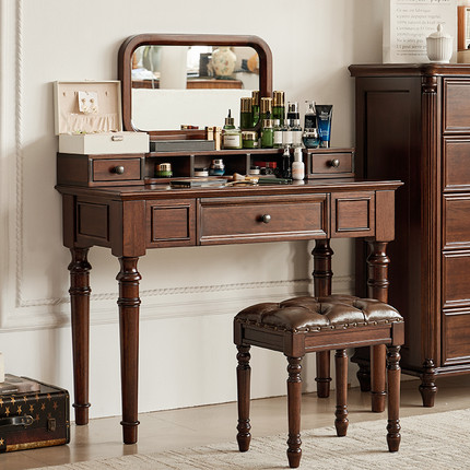 美式乡村简约核桃木全实木卧室梳妆台桌凳化妆镜1.05米书桌写字桌