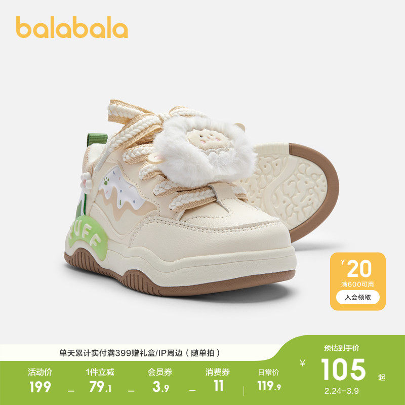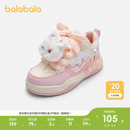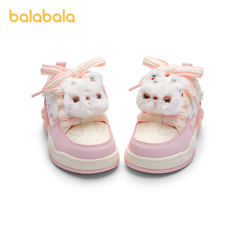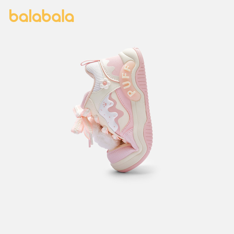 巴拉巴拉童鞋女童板鞋加绒秋冬休闲鞋甜美蝴蝶结潮动物装饰小白鞋