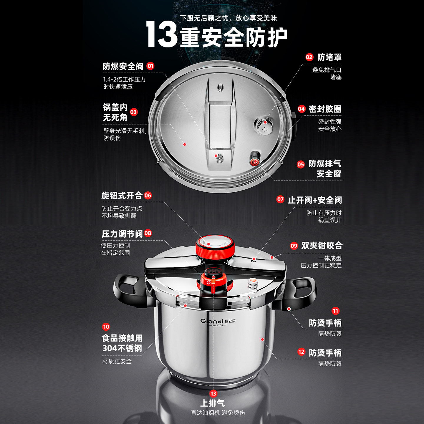 捷安玺高压锅家用小型新款燃气灶电磁炉通用304不锈钢防爆压力锅