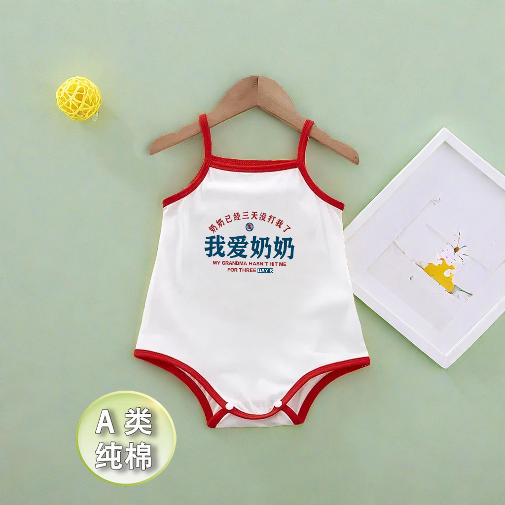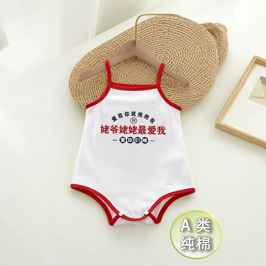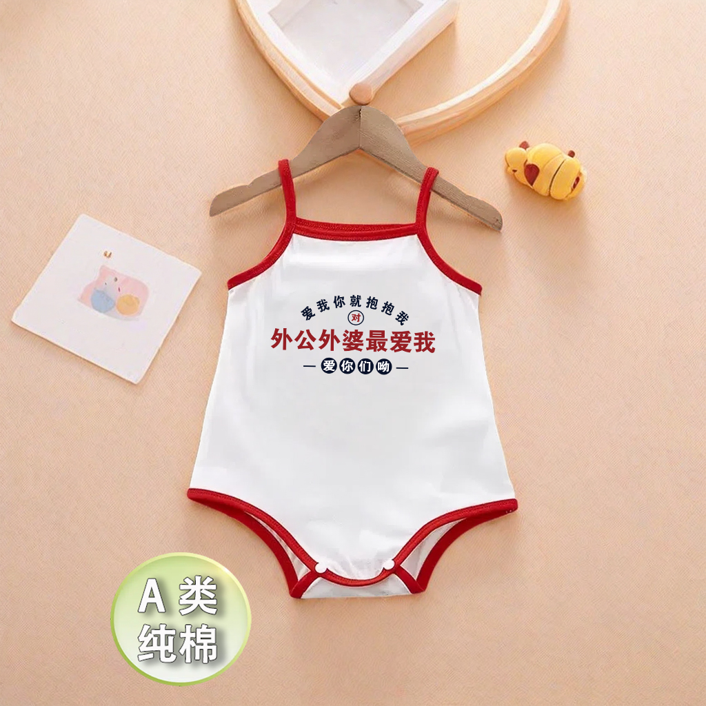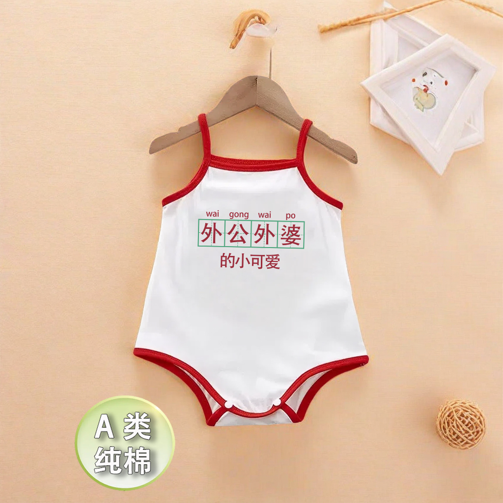 姥爷姥姥最爱我新生儿包屁衣婴儿夏装吊带纯棉哈衣男女宝宝小背心