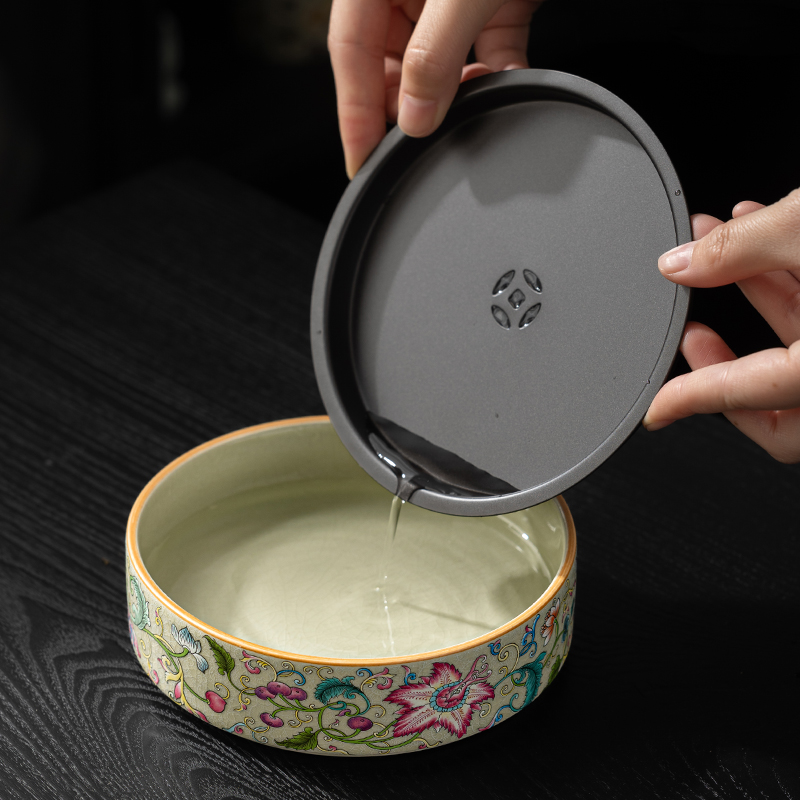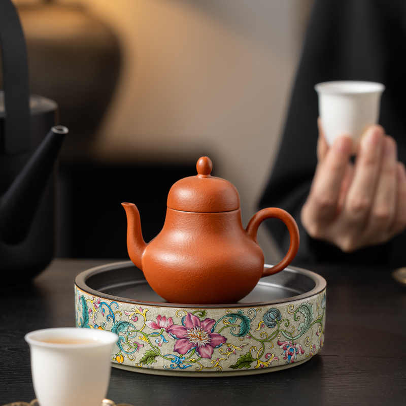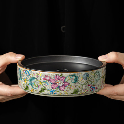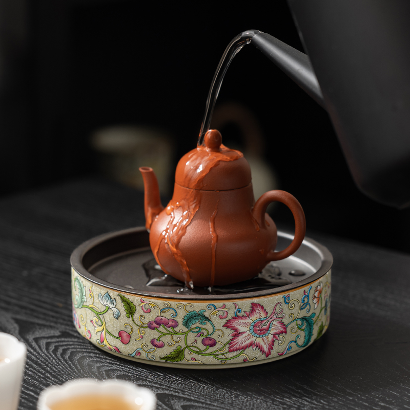 老陶泥凌霄花陶瓷壶承干泡台储水茶台茶洗养壶托盘功夫茶具配件