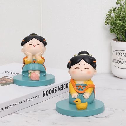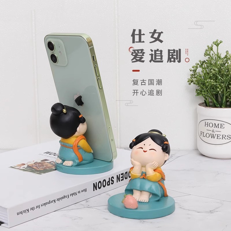 手机支架小摆件创意家居卧室床头办公室桌面懒人手机座古风唐仕女